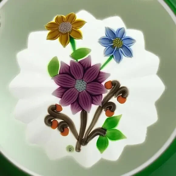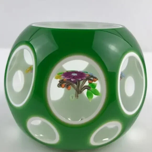 как выглядит Perthshire 1989C Double Overlay Lampwork Flower Bouquet Faceted Paperweight фото