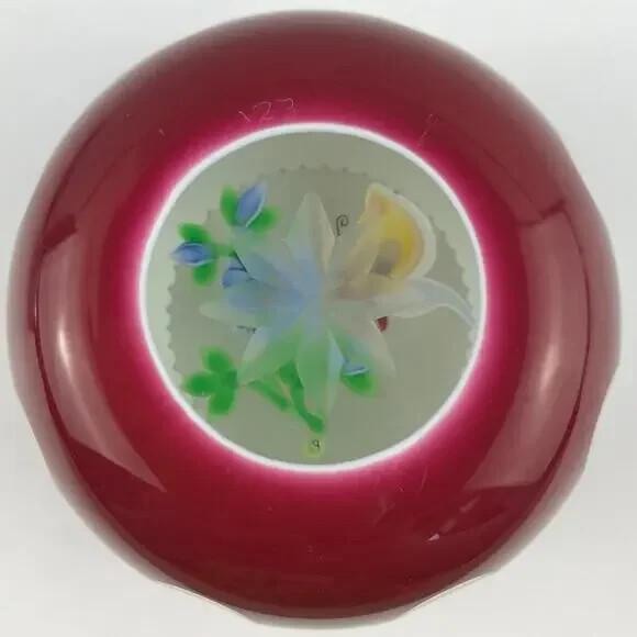 как выглядит Perthshire 1990E Double Overlay Lampwork Butterfly Flower Faceted Paperweight фото