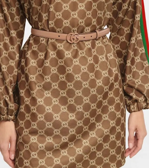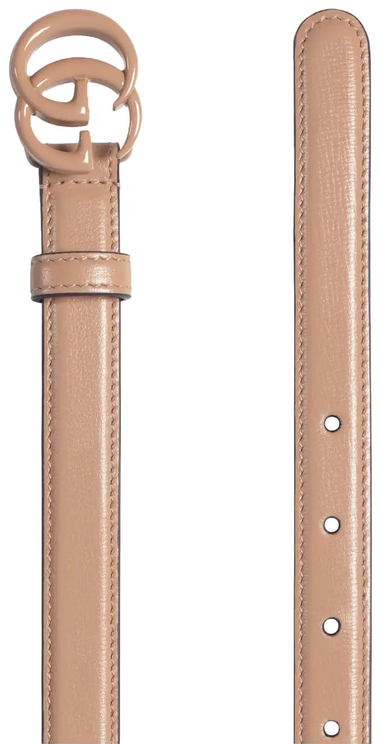 как выглядит Authentic Womens Gucci Rose Beige GG Marmont Thin Leather Belt 409417 New фото