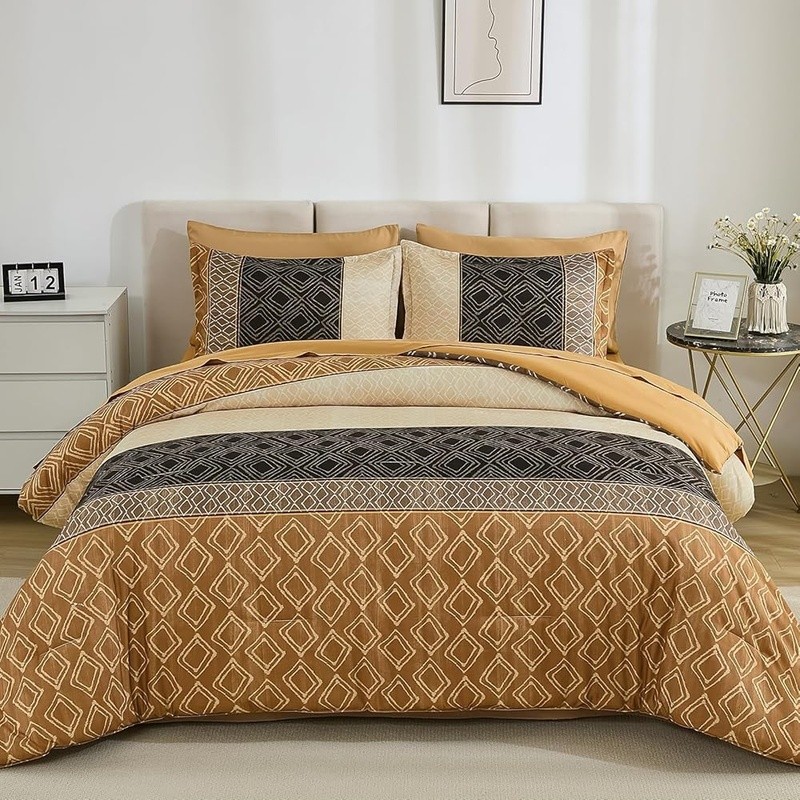 как выглядит Boho Queen Comforter Set Brown 7 Piece Bed in a Bag Warm Fall Bedding Set фото