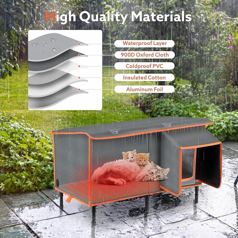 Heated Cat House Waterproof Insulated Outdoor Feral Pet Shelter W/ Heating Pad