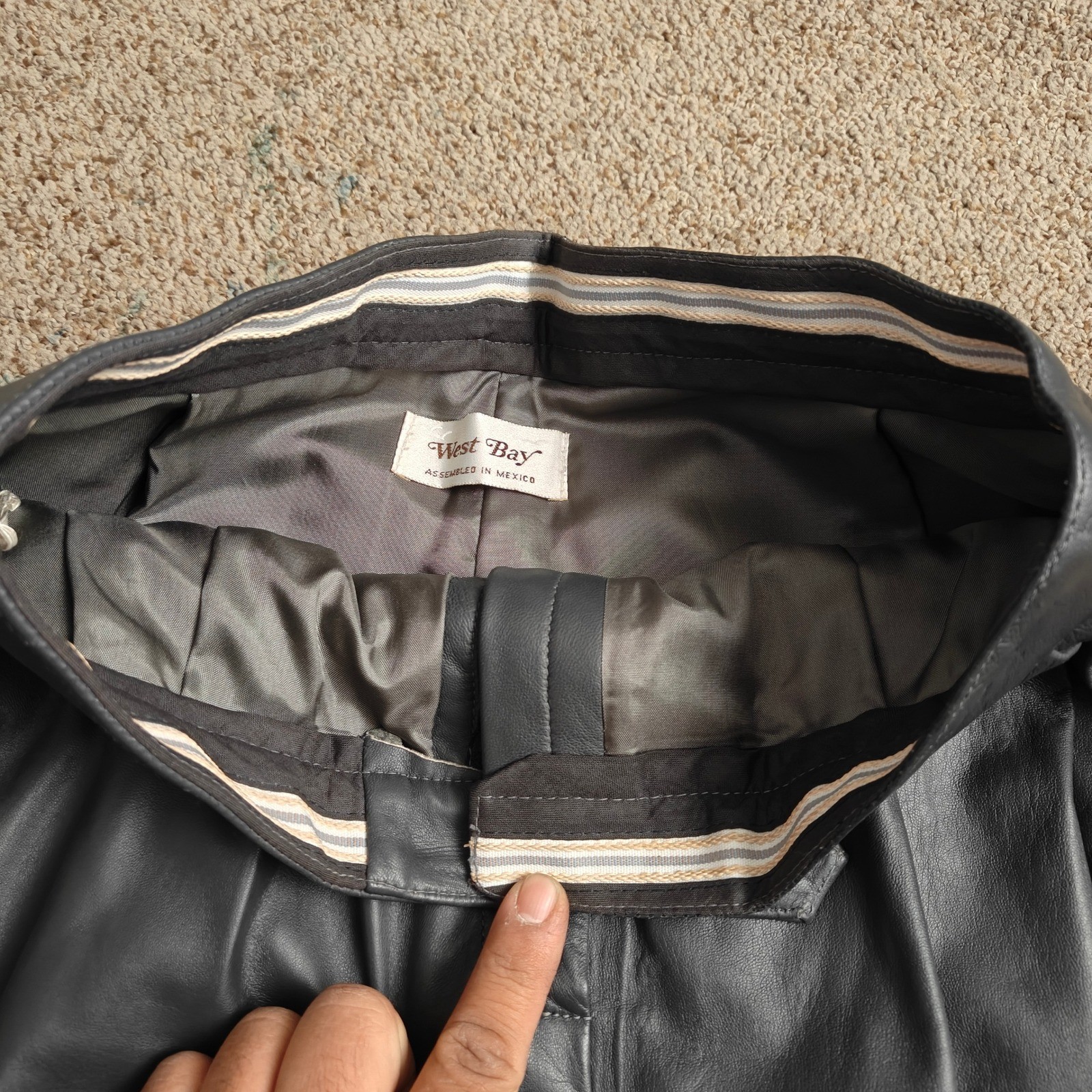 VTG West Bay Women Sz 14 Charcoal Gray Lamb Napa Leather Pleated Trousers Pants