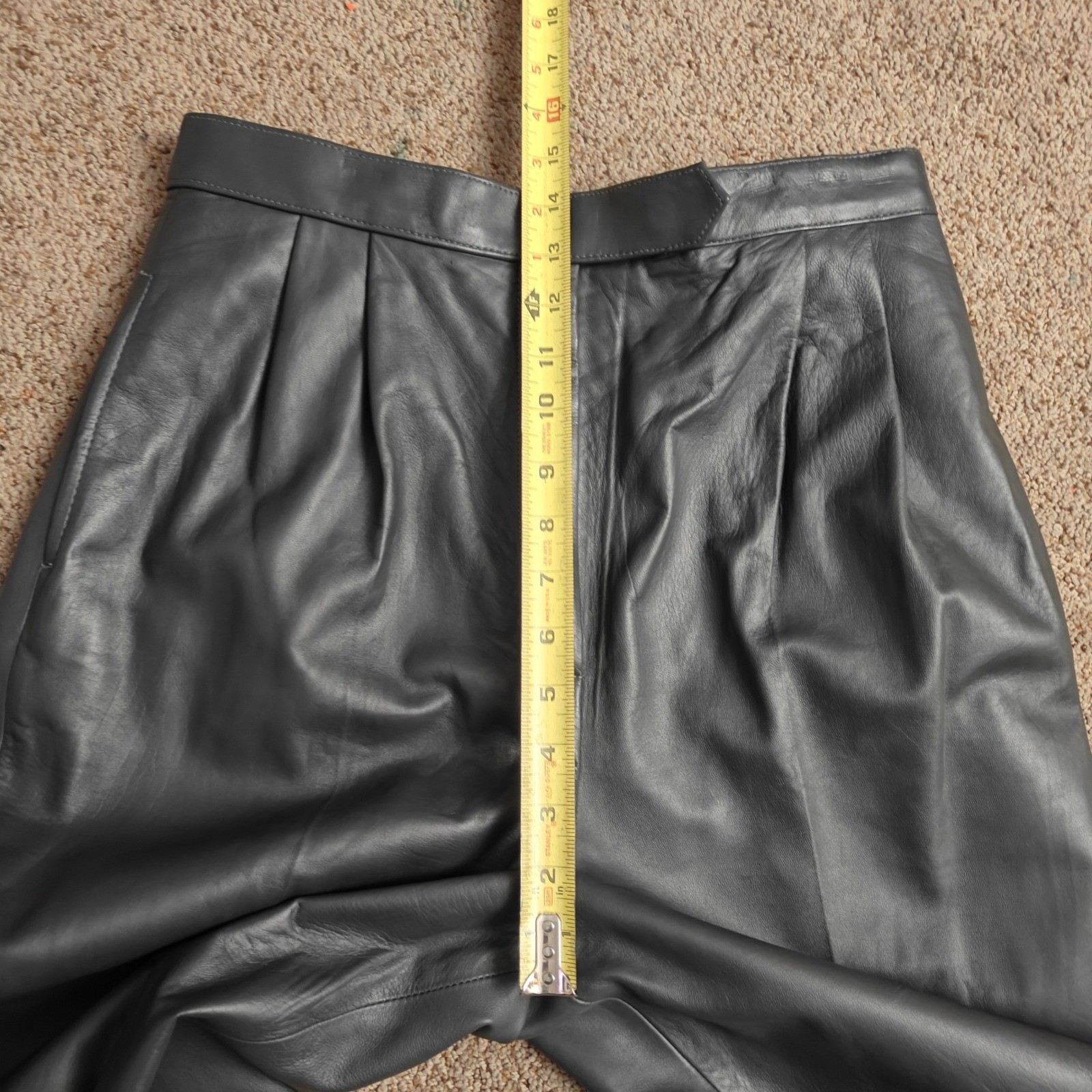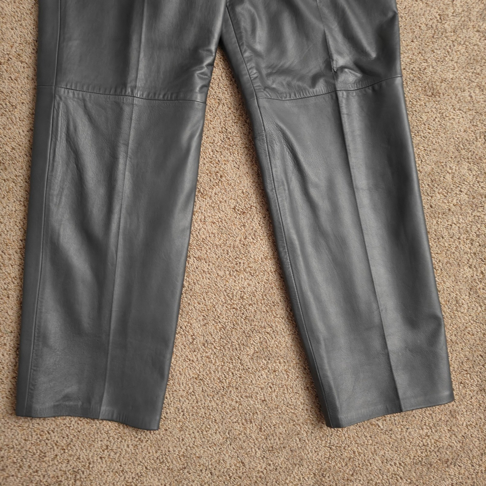 как выглядит VTG West Bay Women Sz 14 Charcoal Gray Lamb Napa Leather Pleated Trousers Pants фото