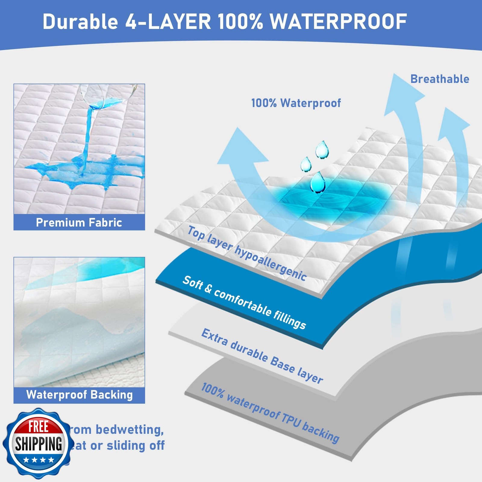 GRT 2 Pack Waterproof Crib Mattress Protector, Quilted Baby Mattr