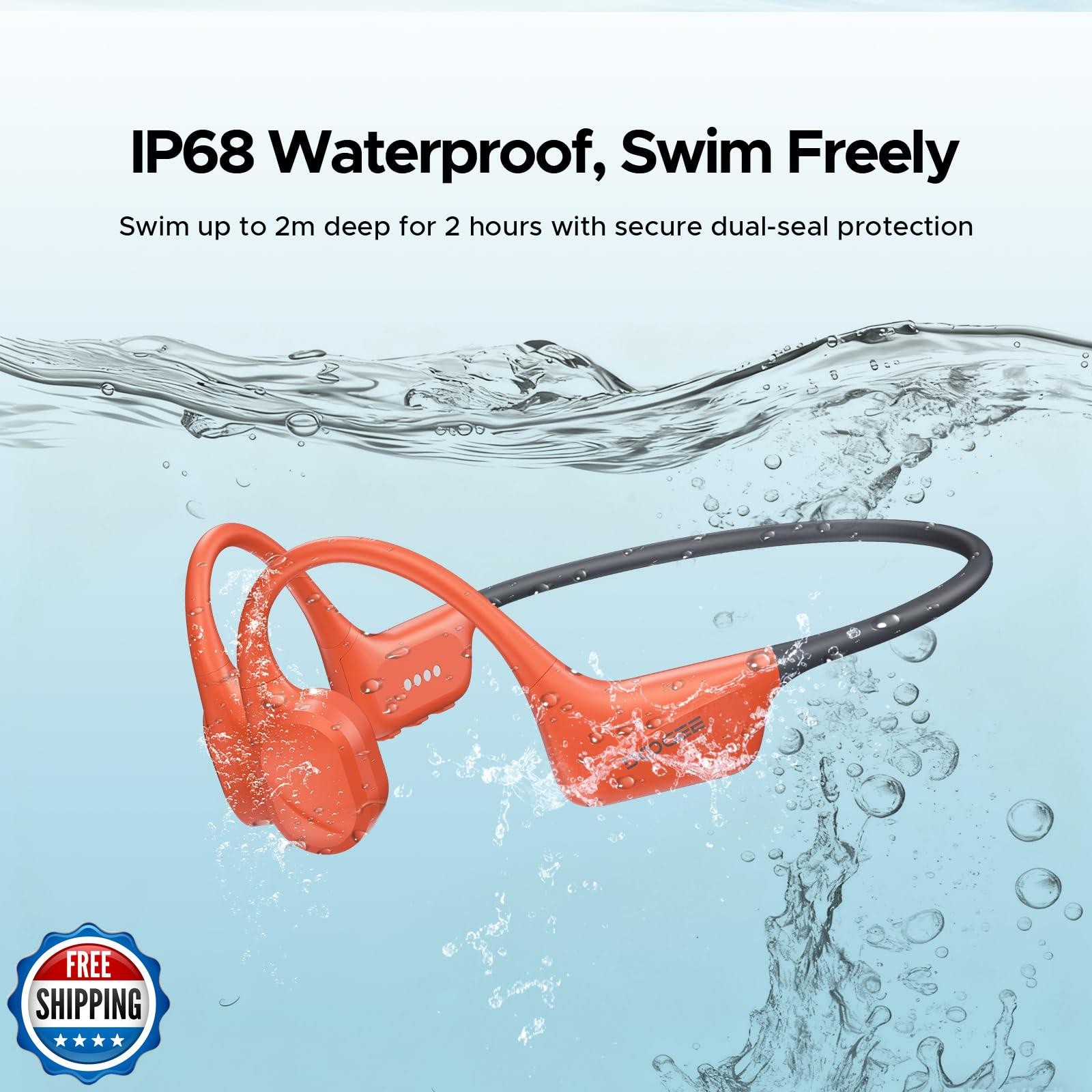 DOOGEE Bone Conduction Headphones, IP68 Waterproof Swimming Open