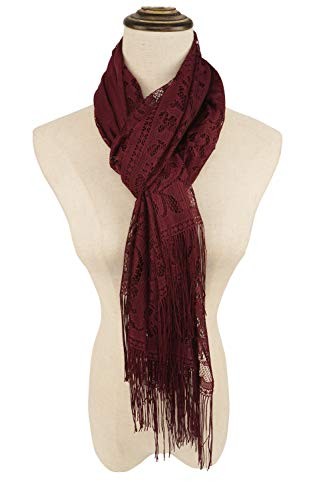 Ladies/Women's Lightweight Solid Color Fringe Lace Tassels Long Shawl Burgundy