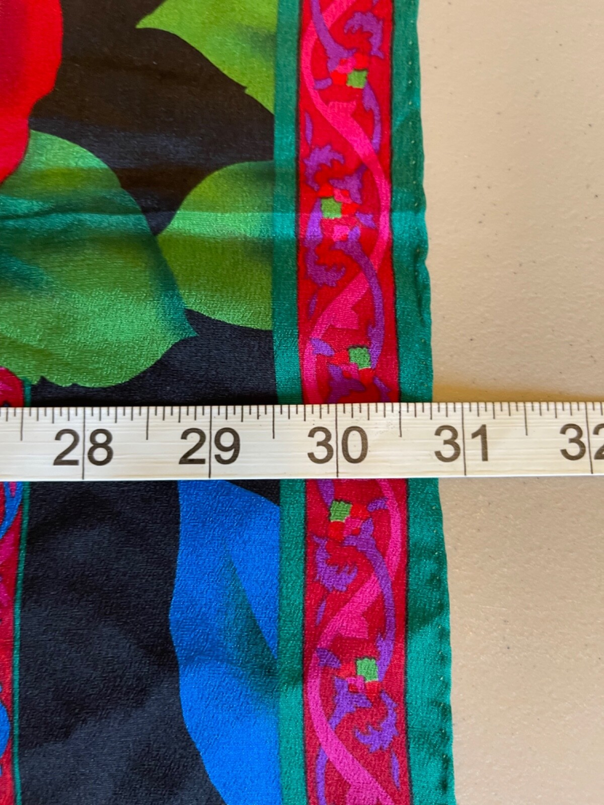 как выглядит Vtg Silk Scarf Bold Colors Flowers Red Blue Green Black Square 31x31 фото