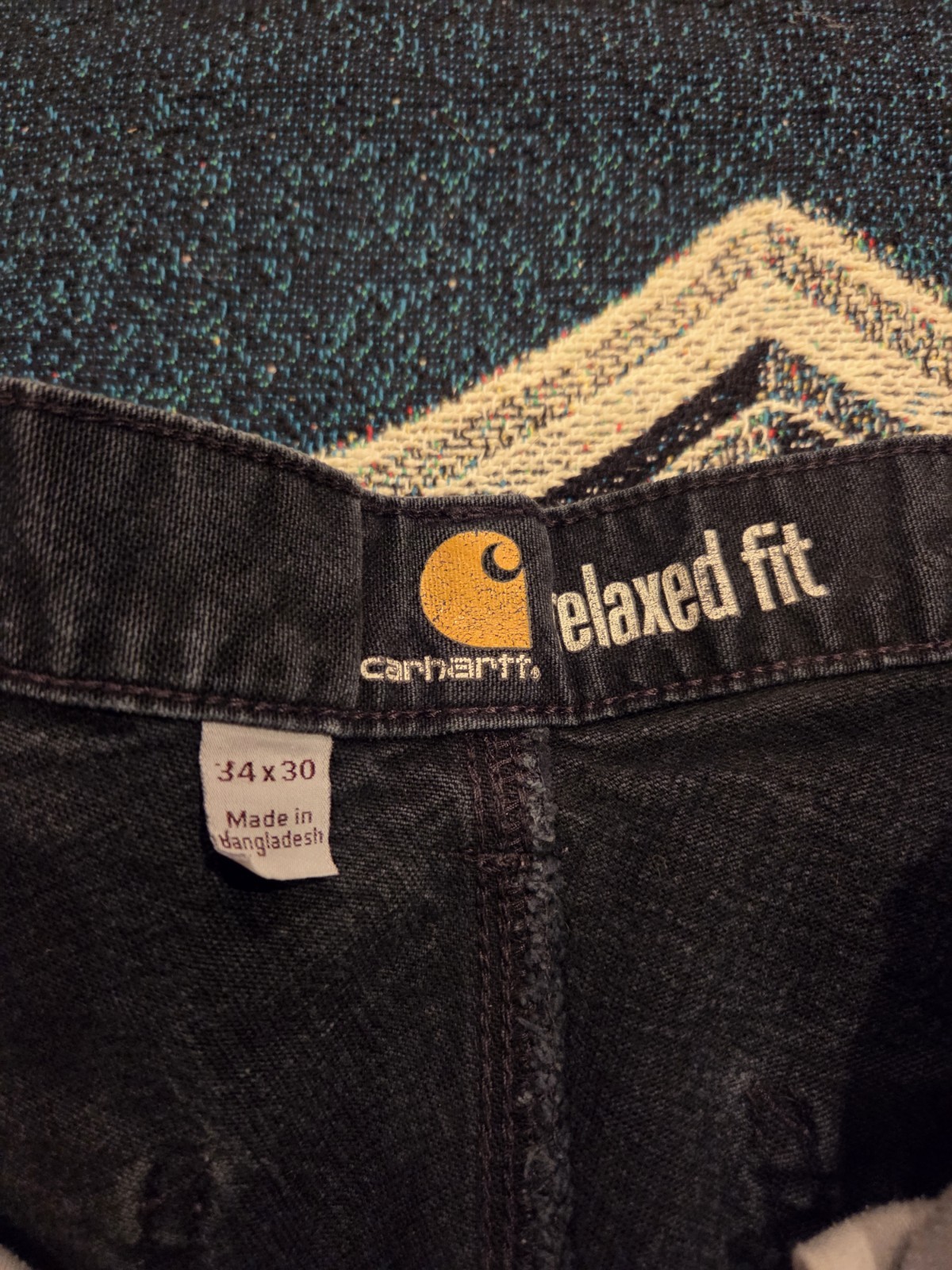 Carhartt Double Knee relaxed fit Pants Men's 34x32 Black Distressed 103334 BLK