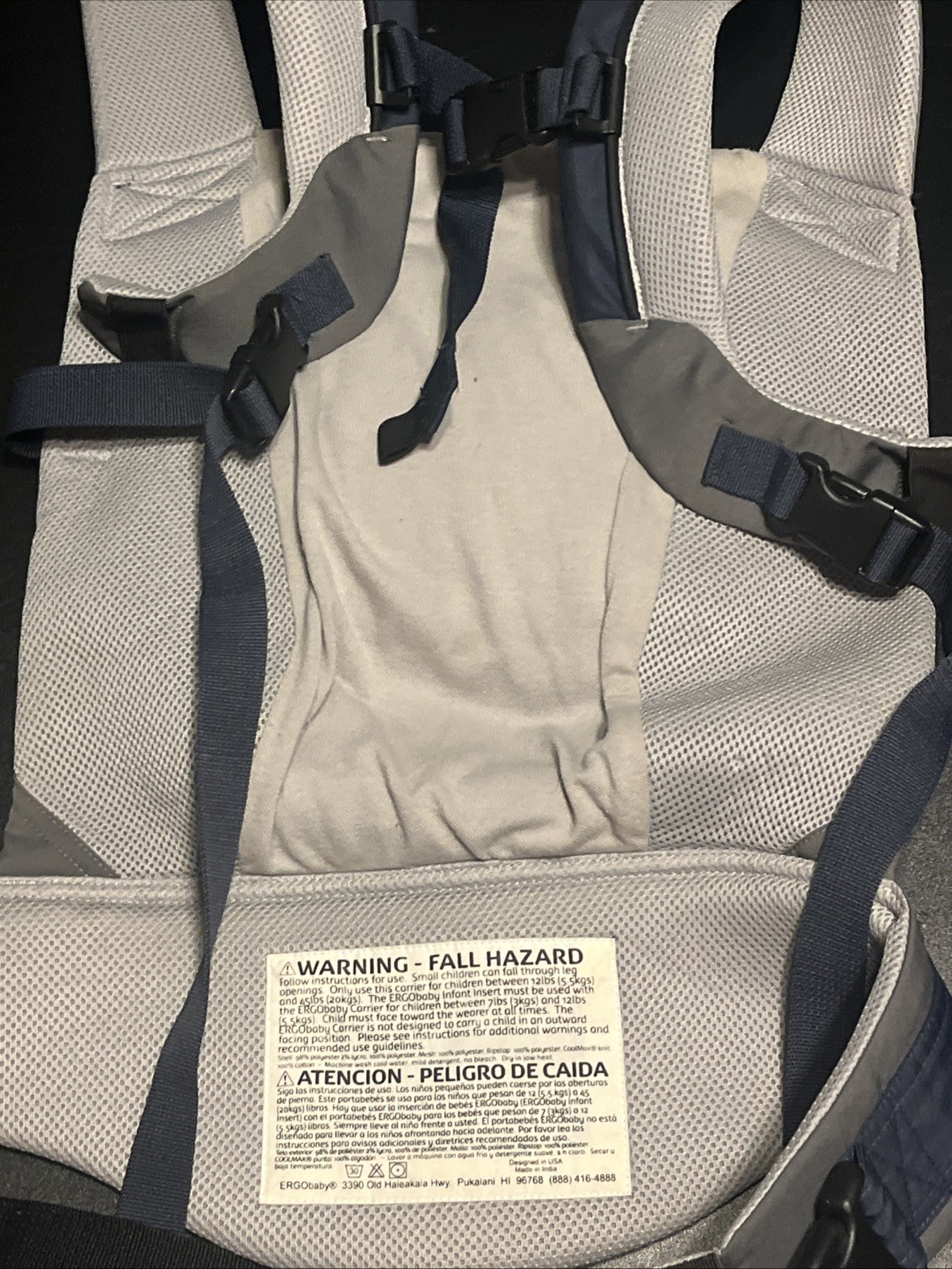 Ergo Baby Performance Carrier Unisex Gray/Blue Adjustable Hooded Lightweight