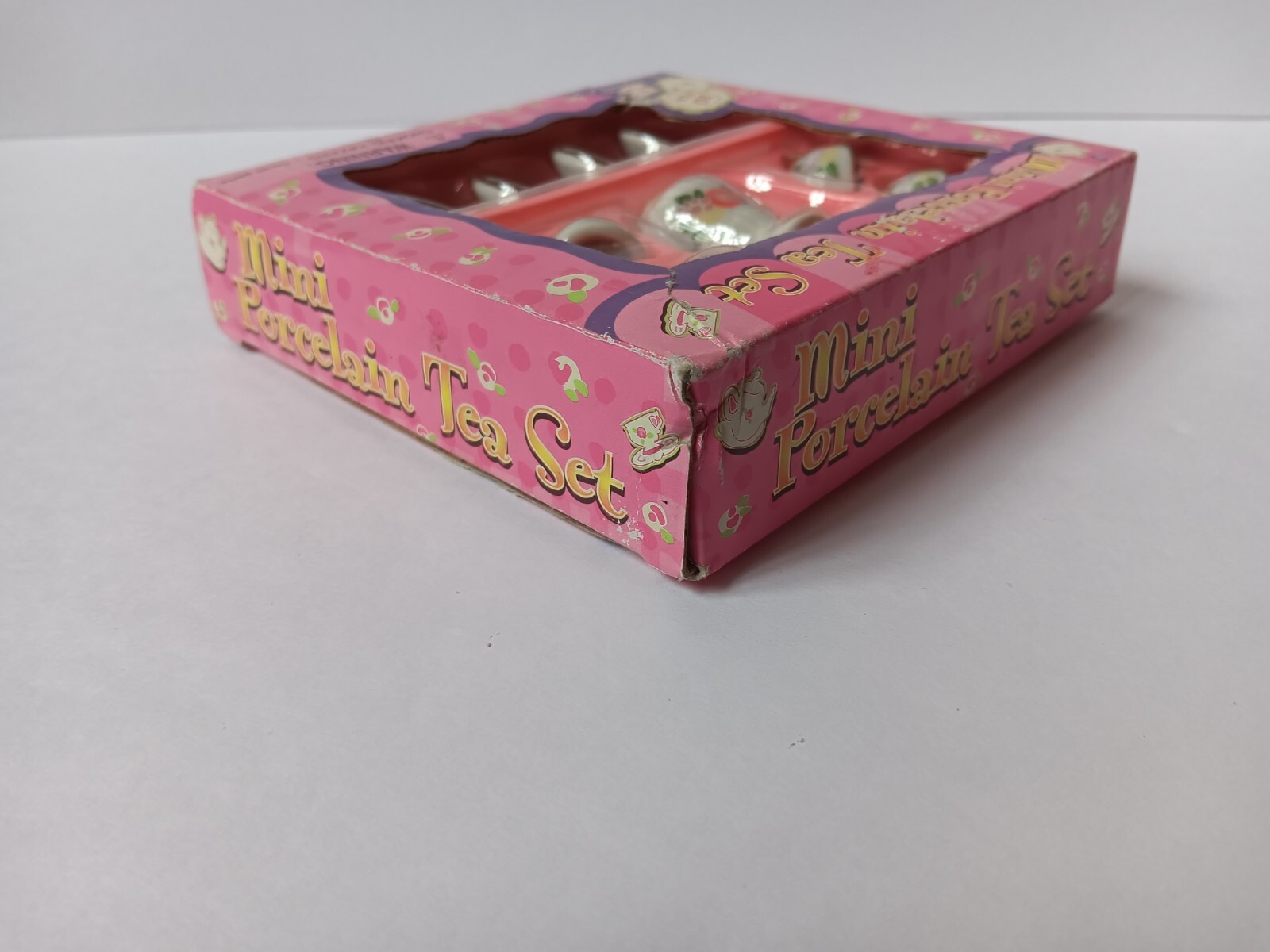 10 Piece Mini Porcelain Tea Set, Fruit Pattern, Doll House Accessory, Box Damage