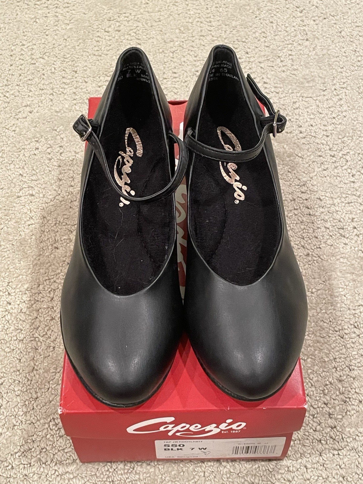 как выглядит New In Box Capezio Black Jr. Footlight Character Dance Shoes Youth Adult Sizes фото