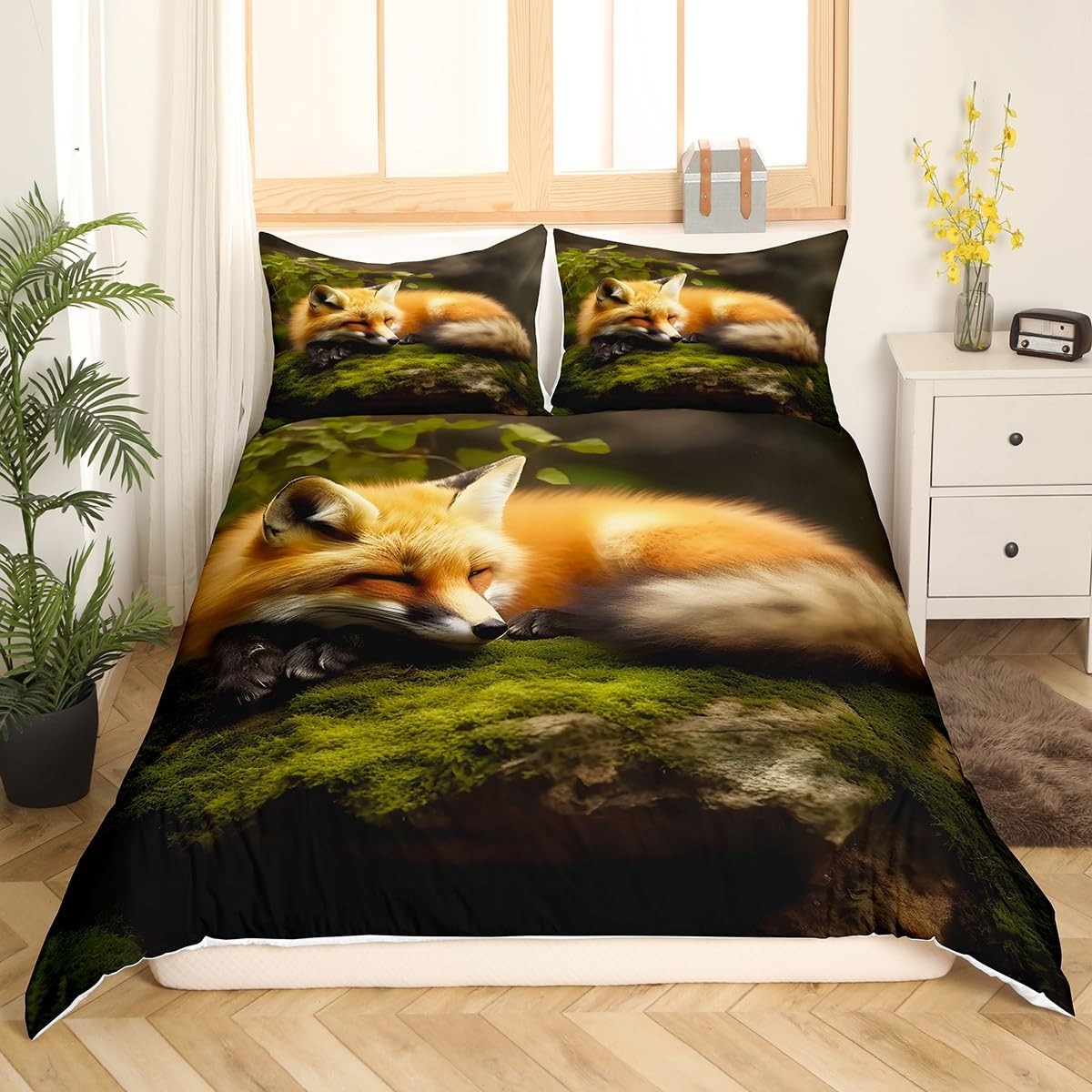 Duvet Cover Fox Print Bedding Set 3D Animal Theme Comforter Cover for Boys Gi...