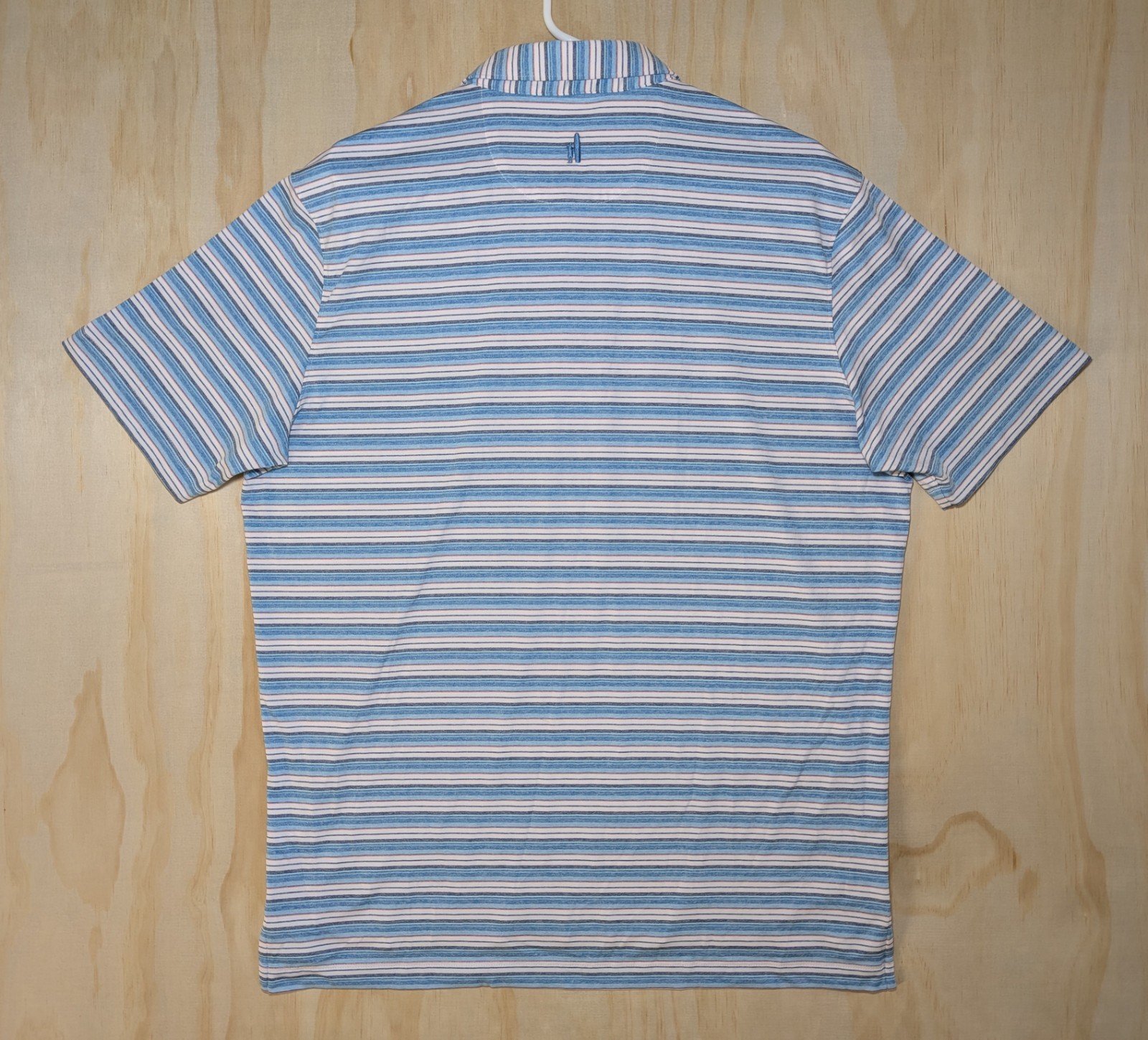 Johnnie-O Men's Large Polo Golf Shirt Blue Stretch Performance Logo Striped