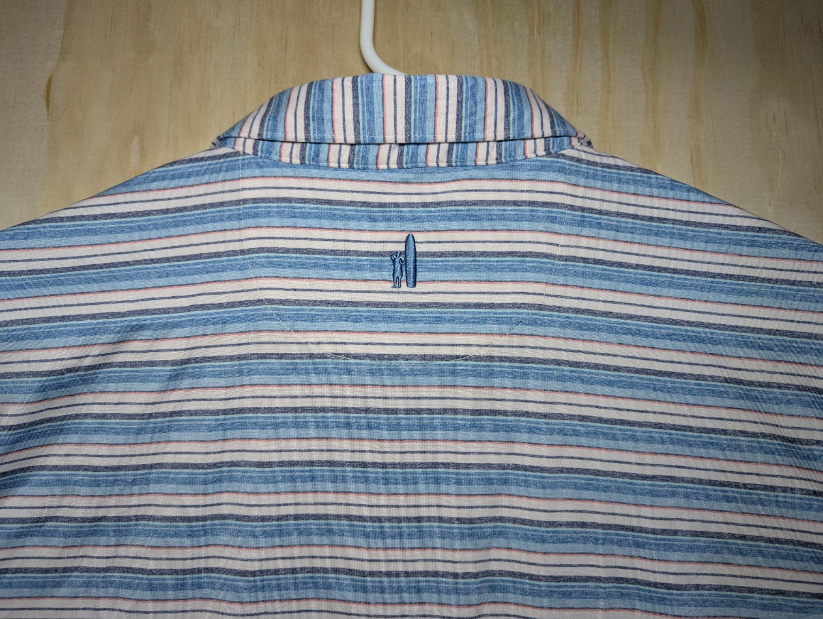 как выглядит Johnnie-O Mens Large Polo Golf Shirt Blue Stretch Performance Logo Striped фото