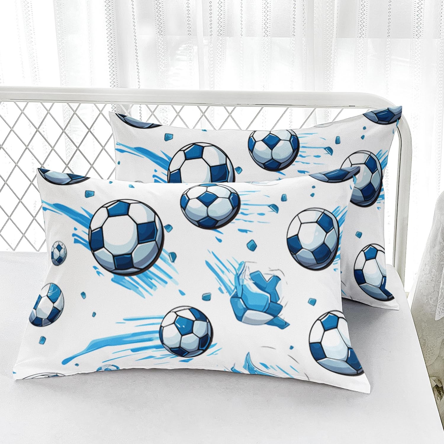 как выглядит Soccer Full Size Fitted Sheet Set, Sport Football Bed Sheet, Blue Graffiti Be... фото