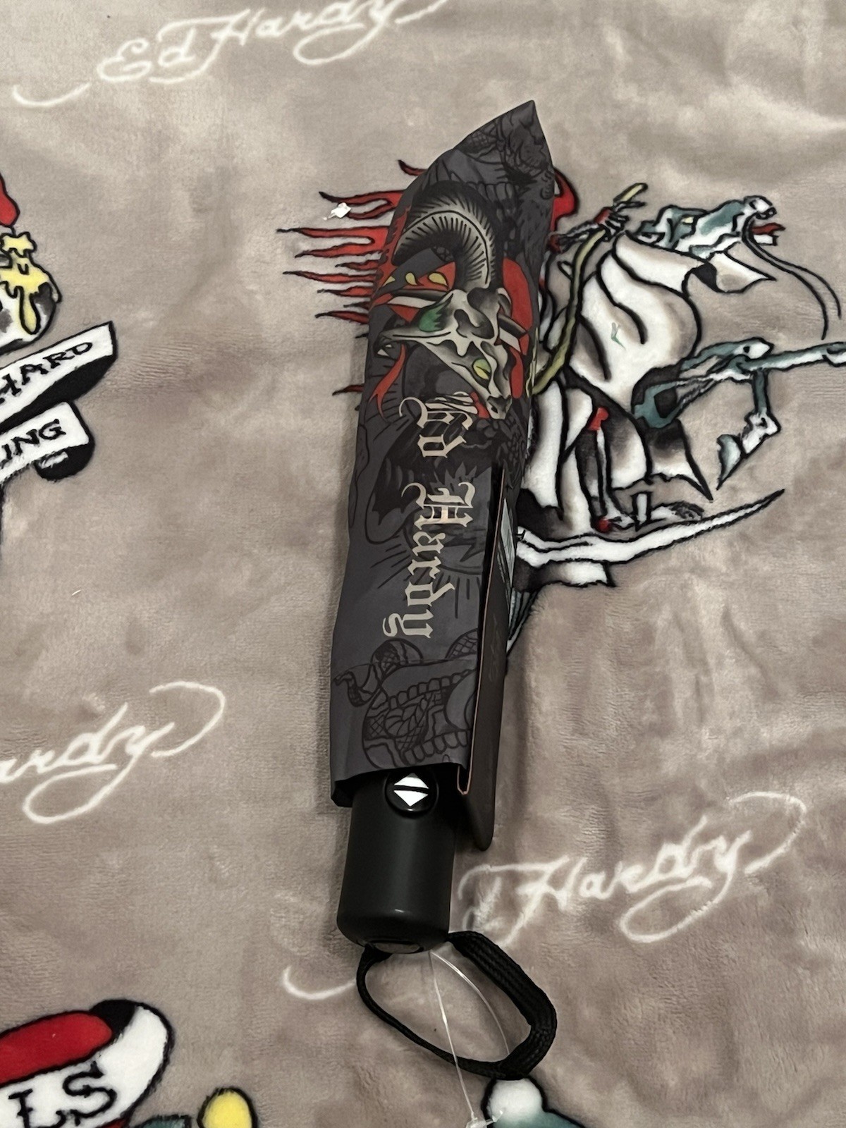 Ed Hardy Grey Auto Umbrella Snake Dagger Death Before Dishonor Rare NWT