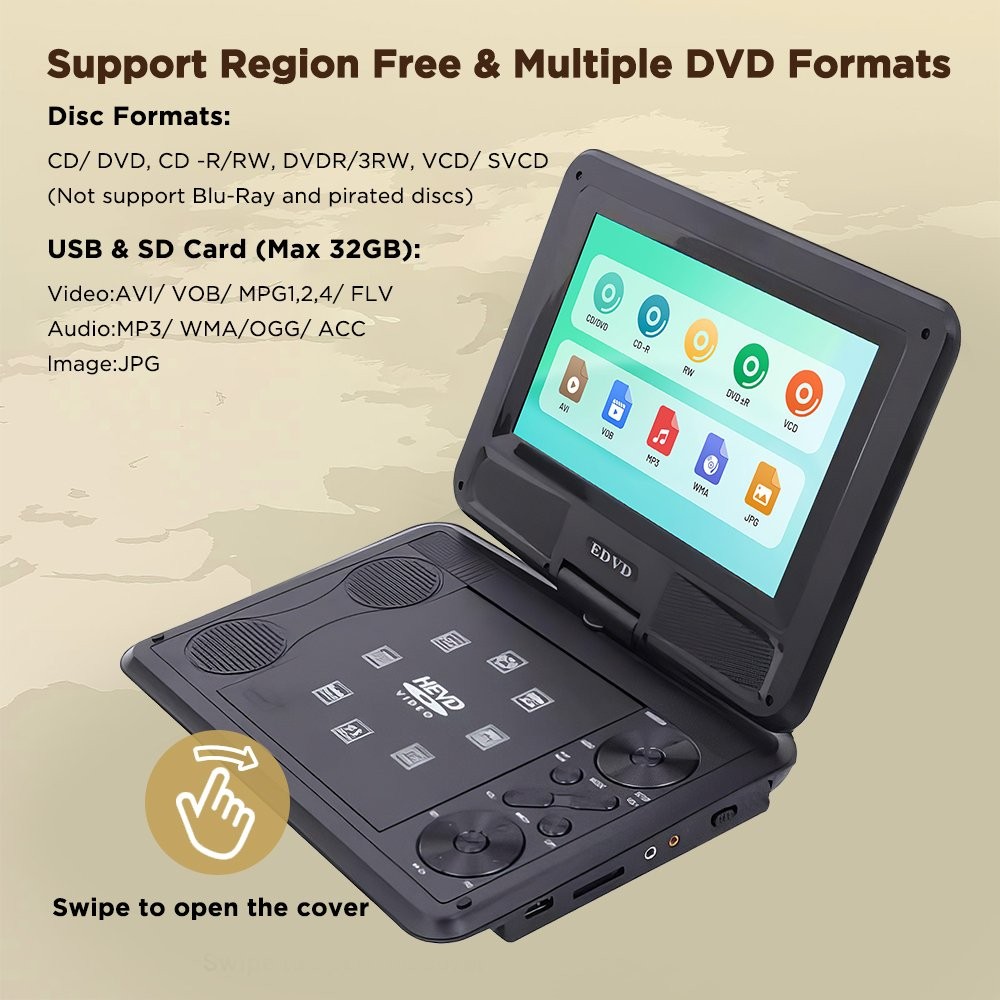 10.8 Portable DVD Player 16:9 LCD Large 270 Swivel Screen Rechargeable Player