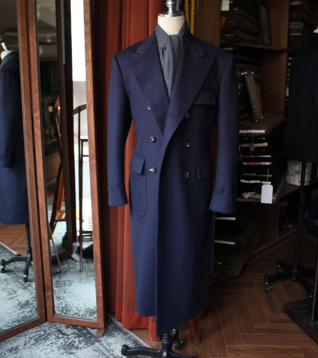 Wool Men's Overcoats Wide Peak Lapel Coats Double Breasted Outdoor Long Coats