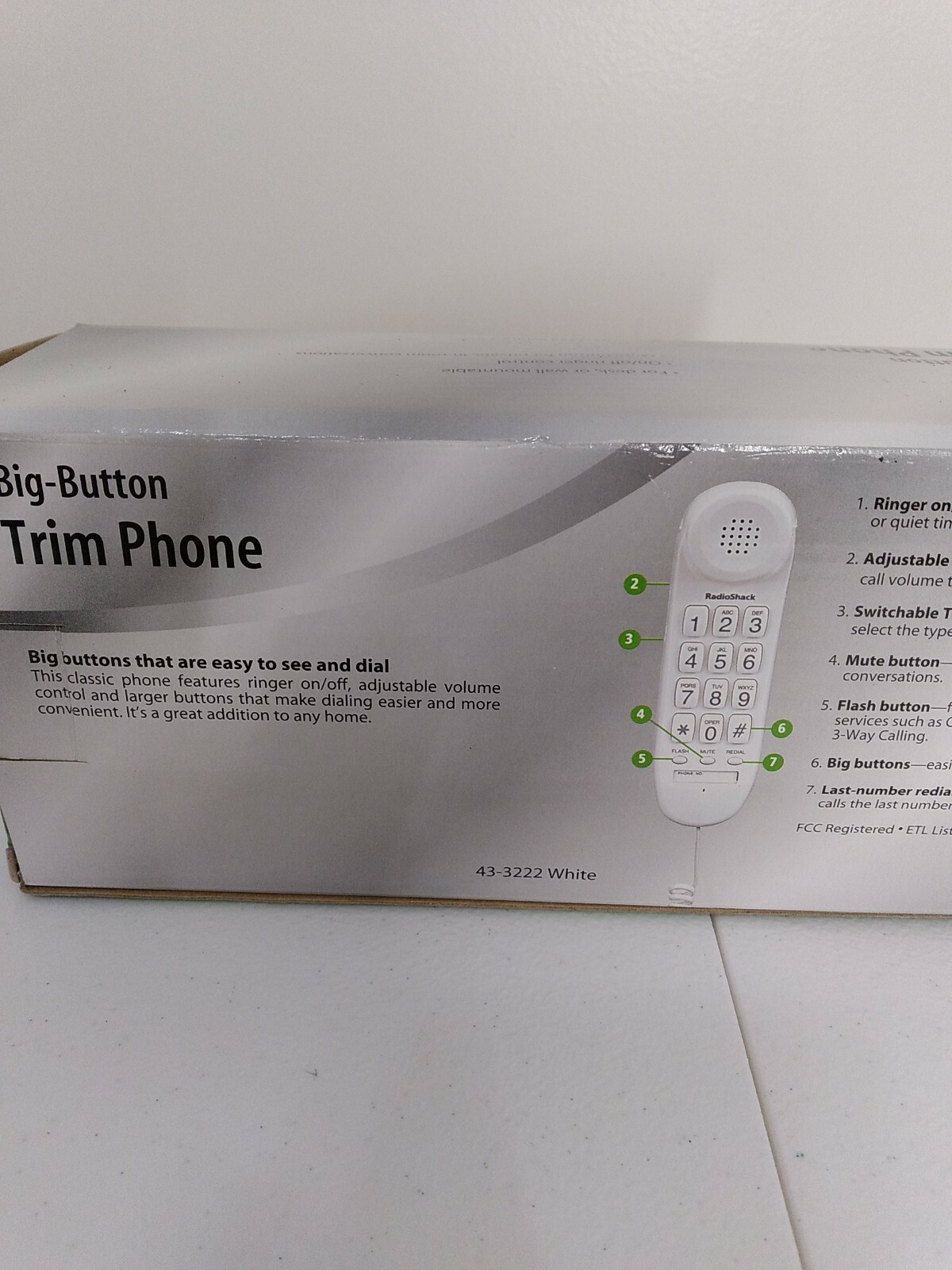 Radio Shack White Telephone Big Button Wall Desk Trim Phone 43-3222 .Used