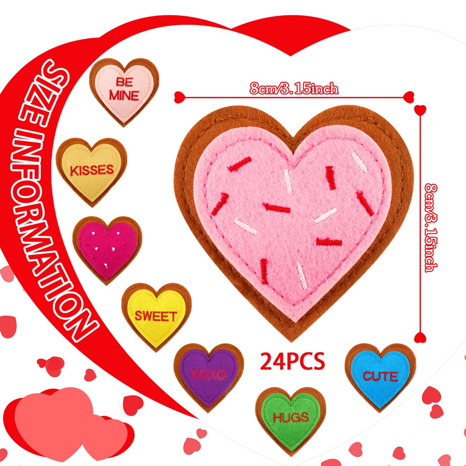 • 24 Pieces Valentine's Day Felt Heart Shaped Ornaments Red Felt Heart Embellishme