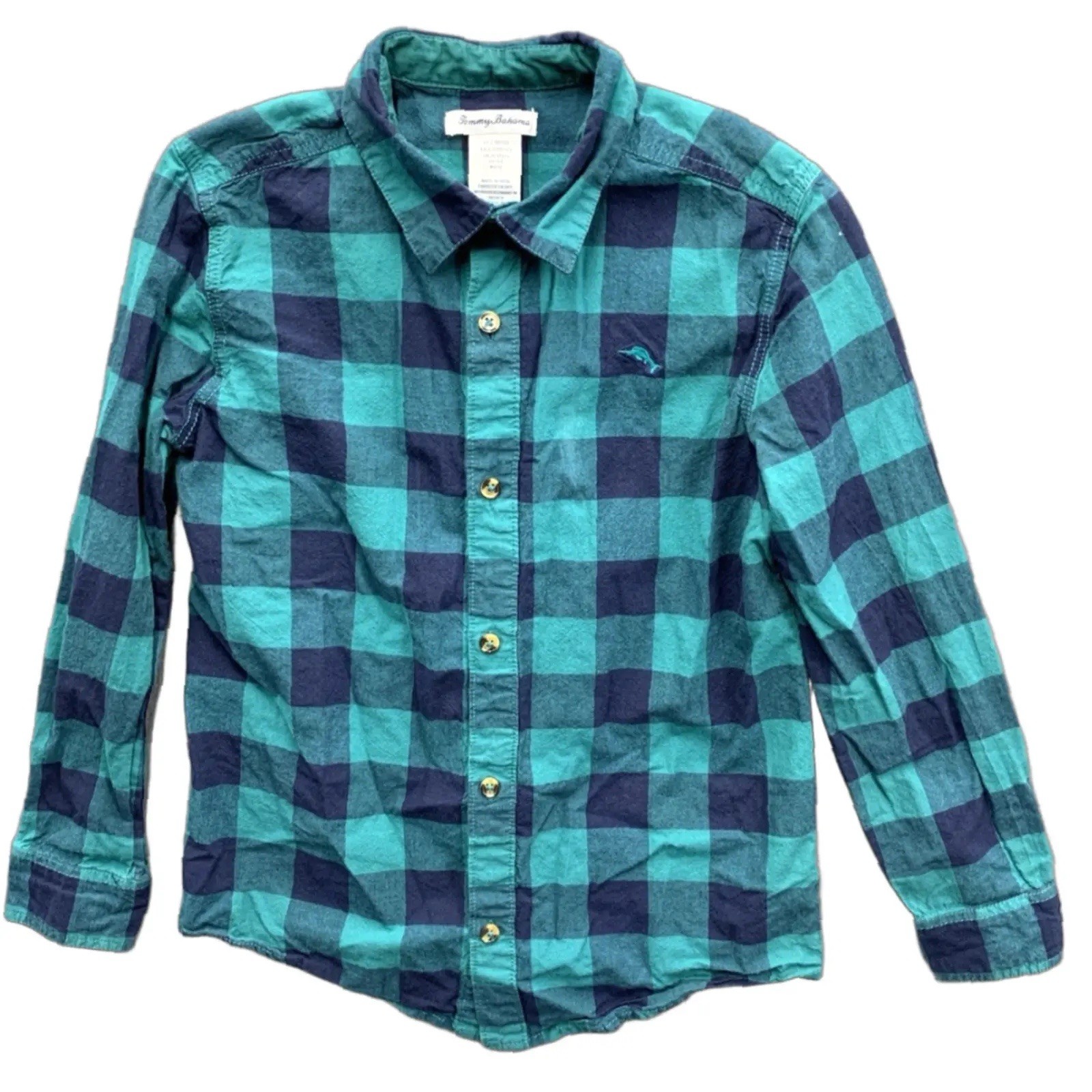 TOMMY BAHAMA Kids long sleeve plaid green button up shirt sz 6