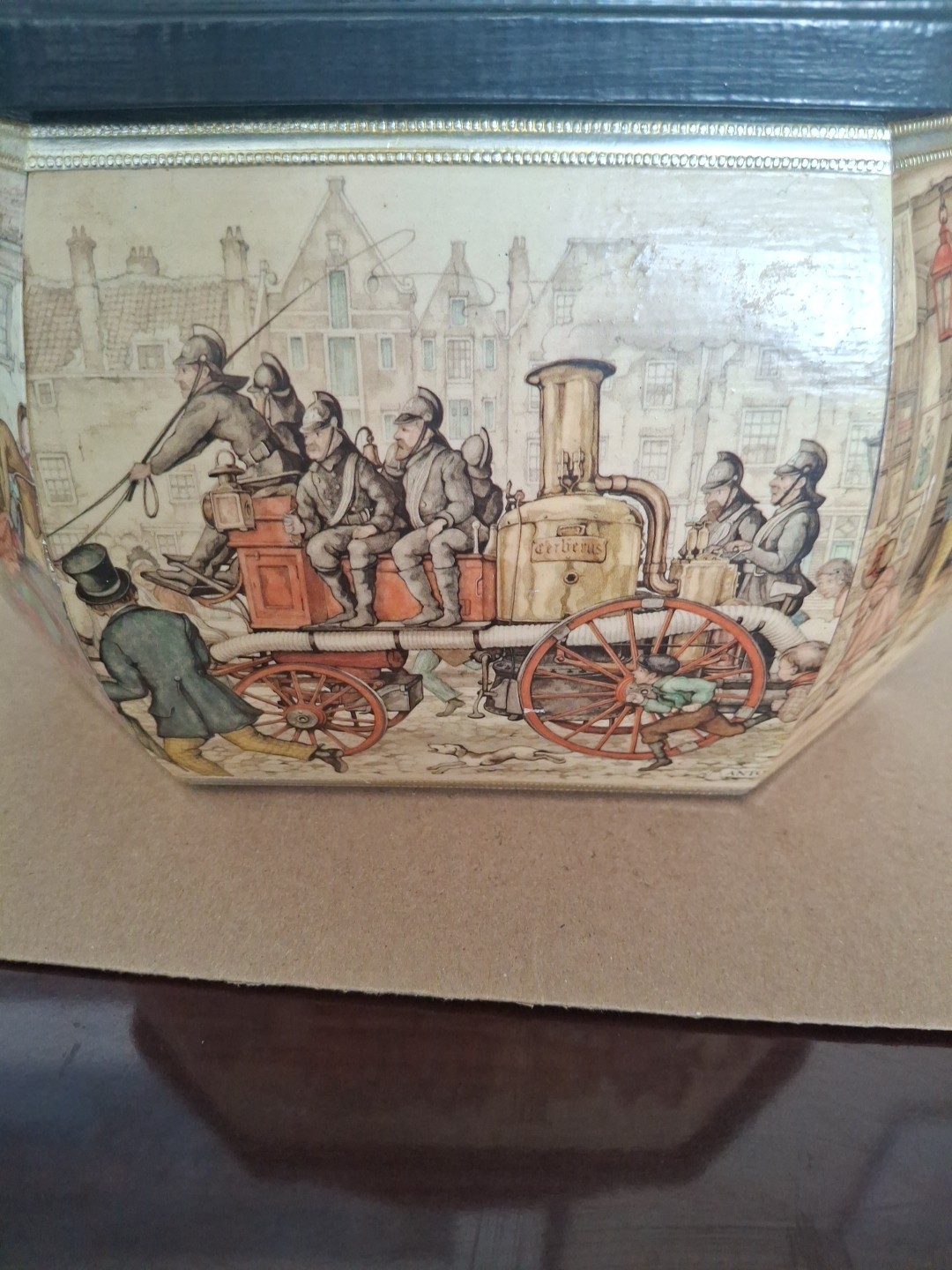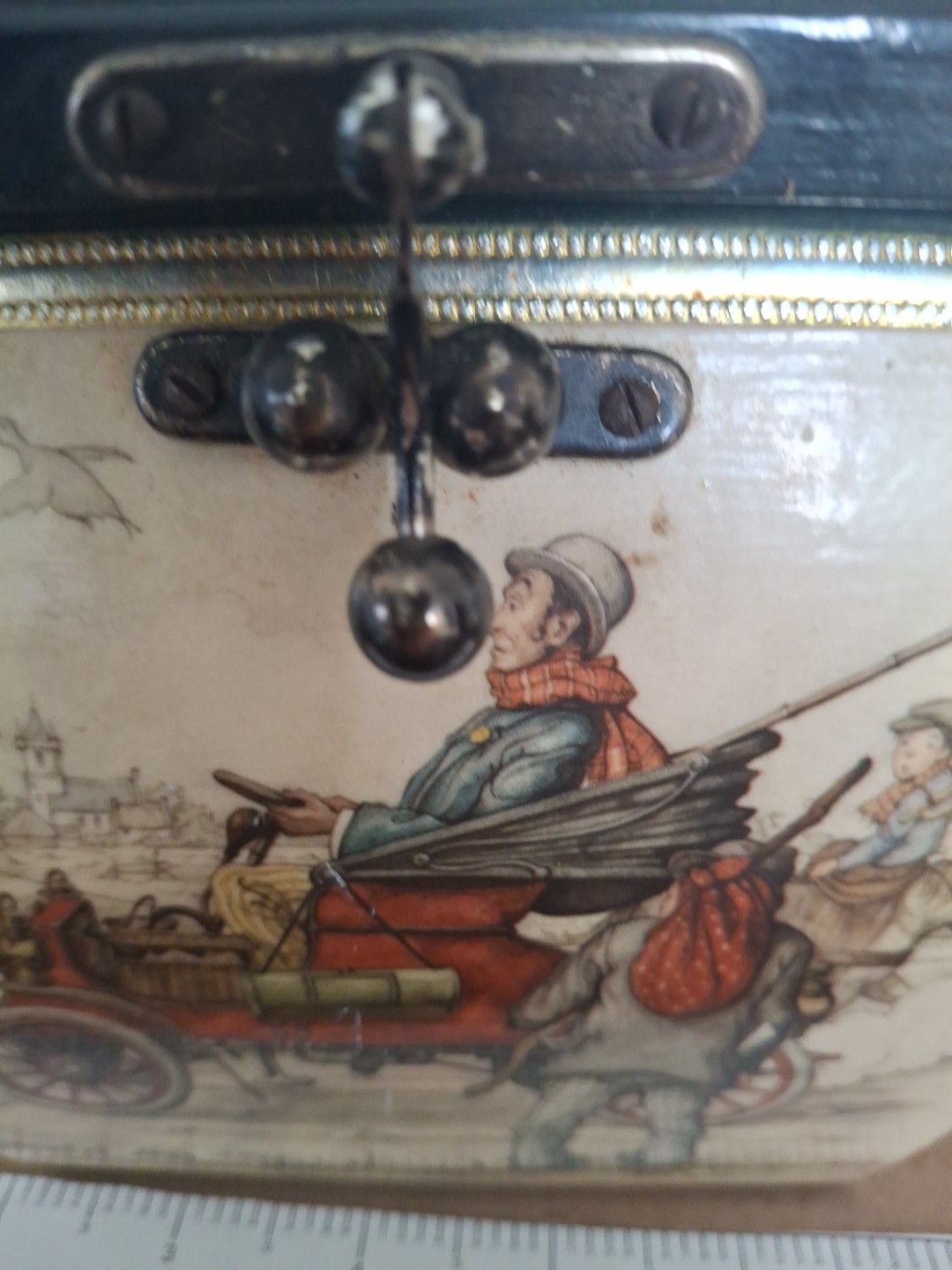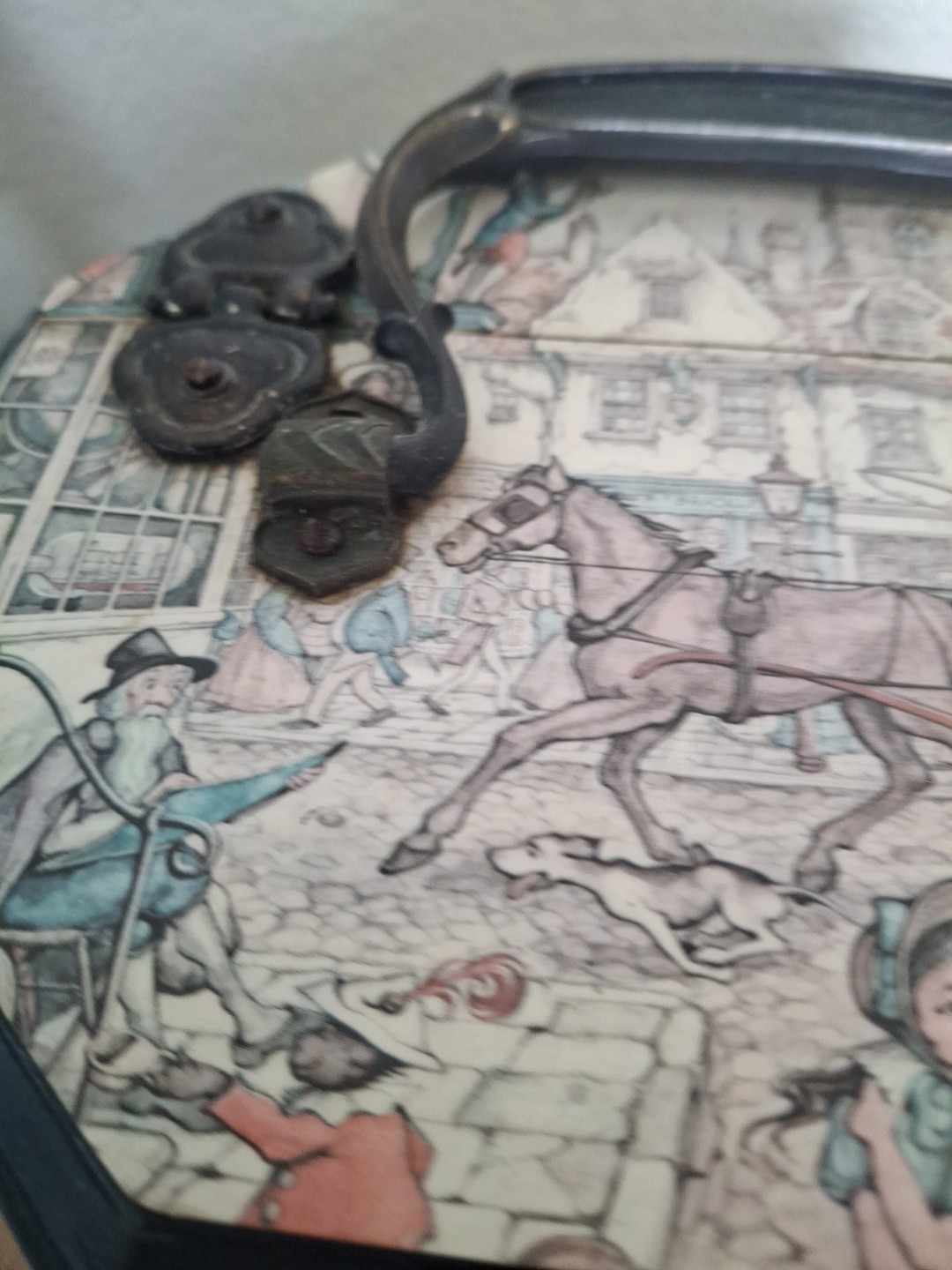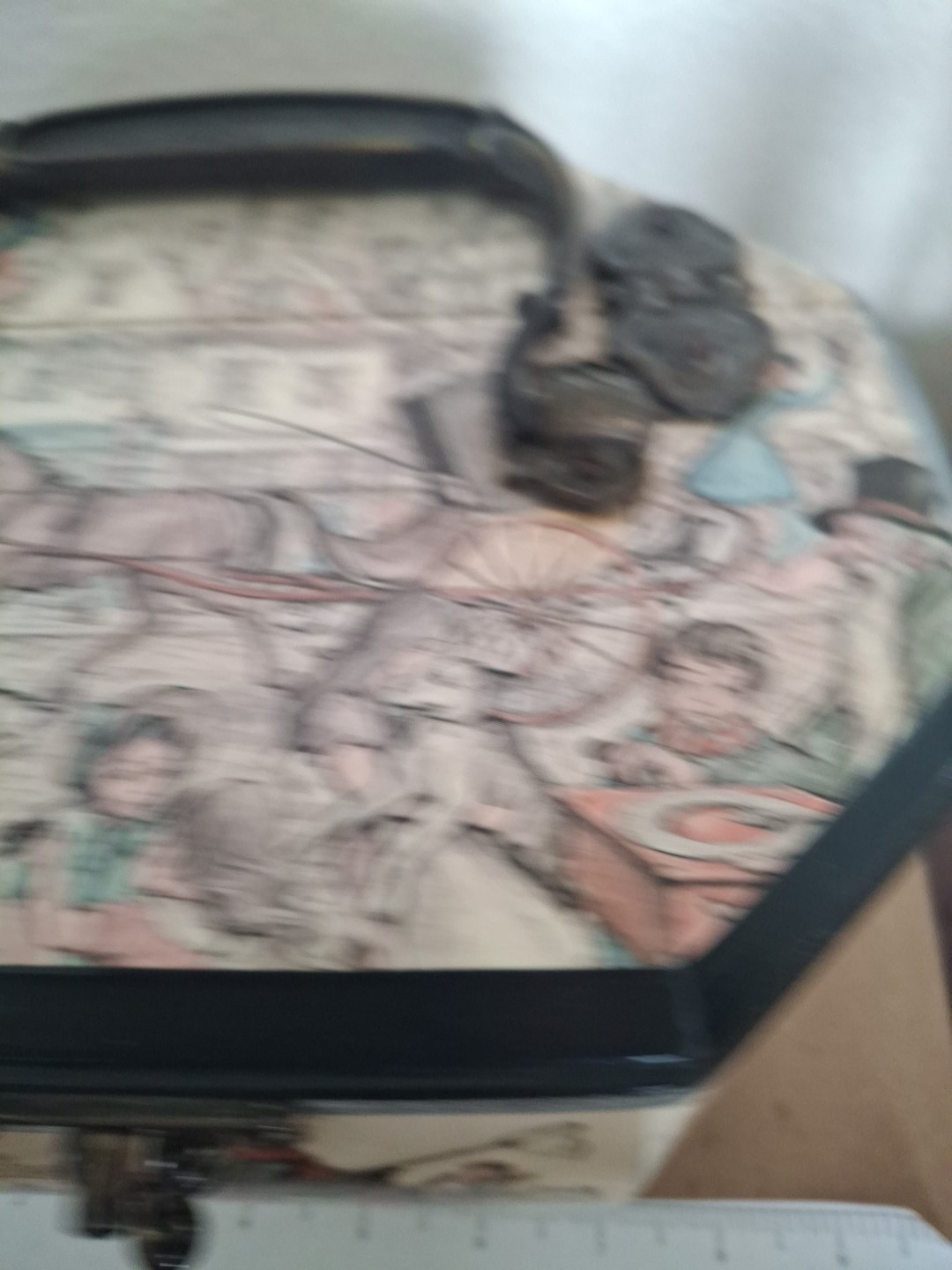 как выглядит Vintage Anton Pieck Wooden Decopage Octagon Box Purse With Brass Handle фото