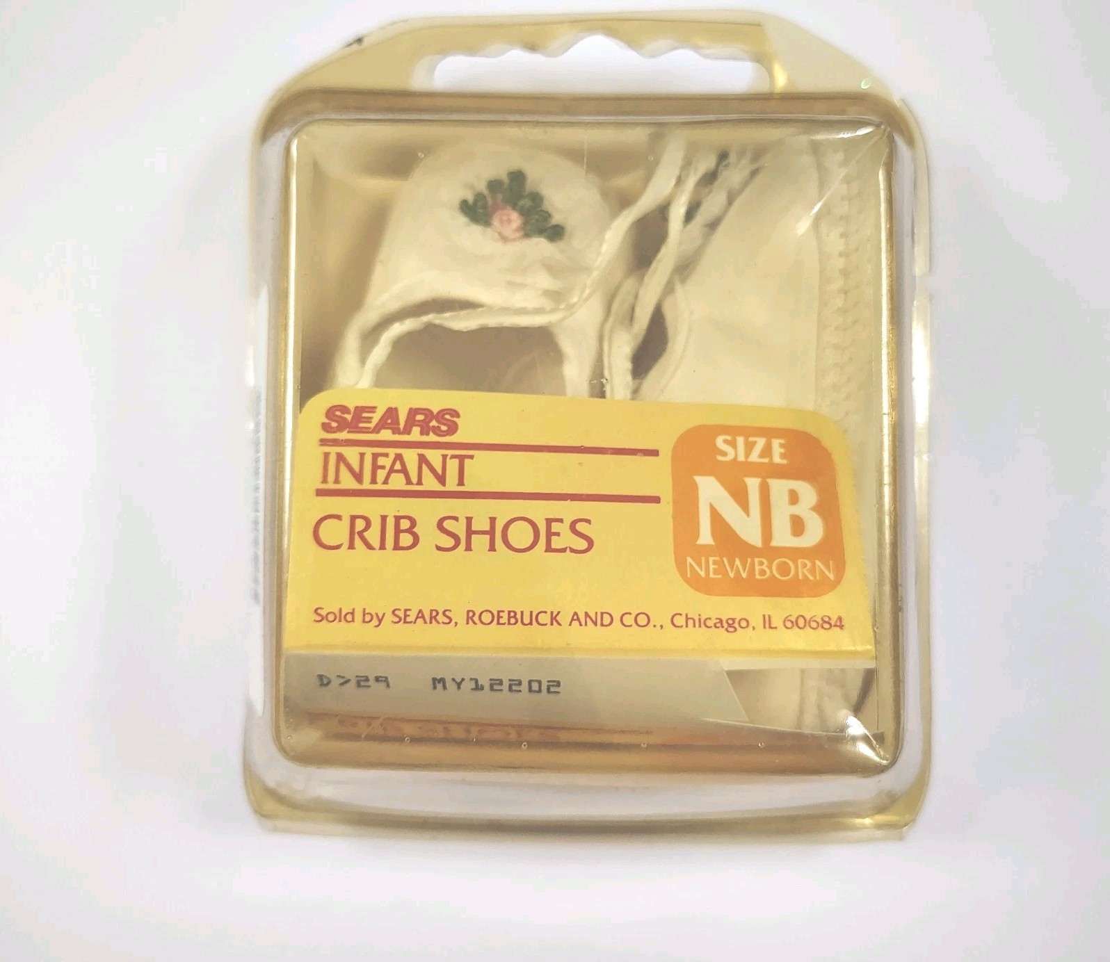 Vintage Sears Baby Crib Shoes Newborn NB Soft Sole In Box