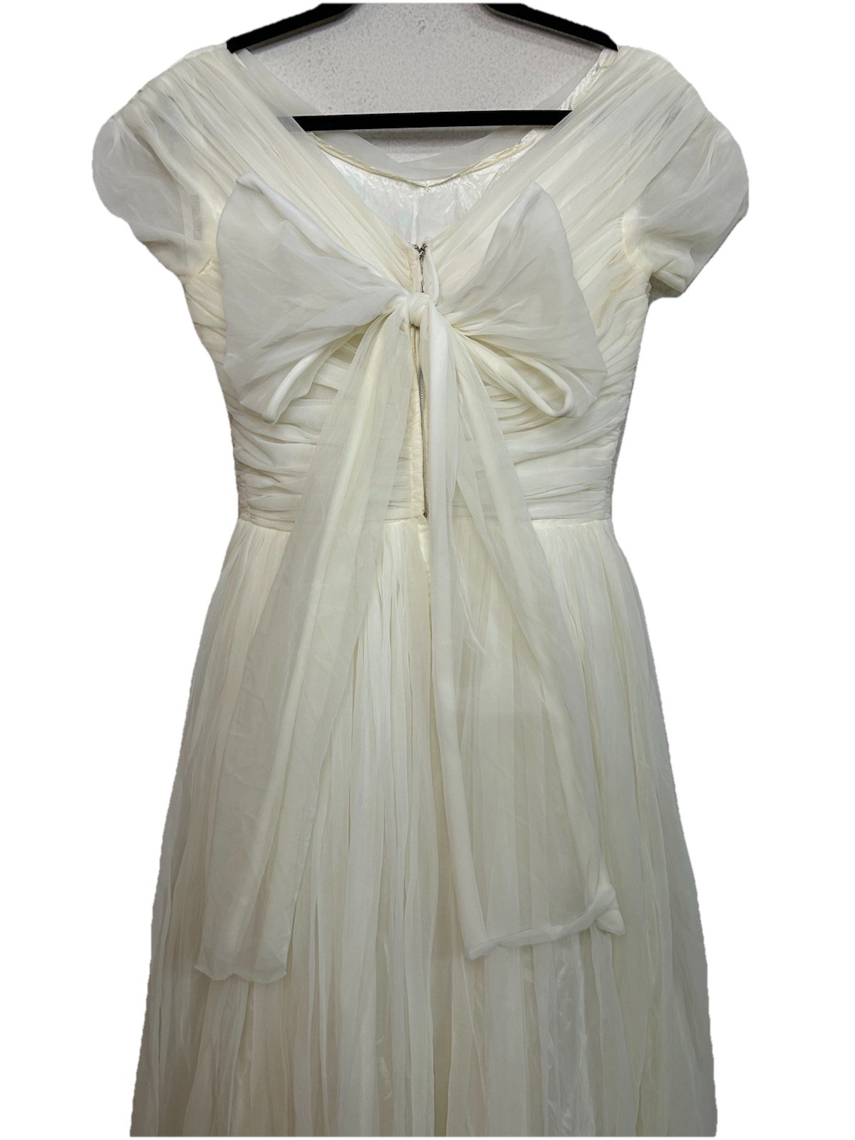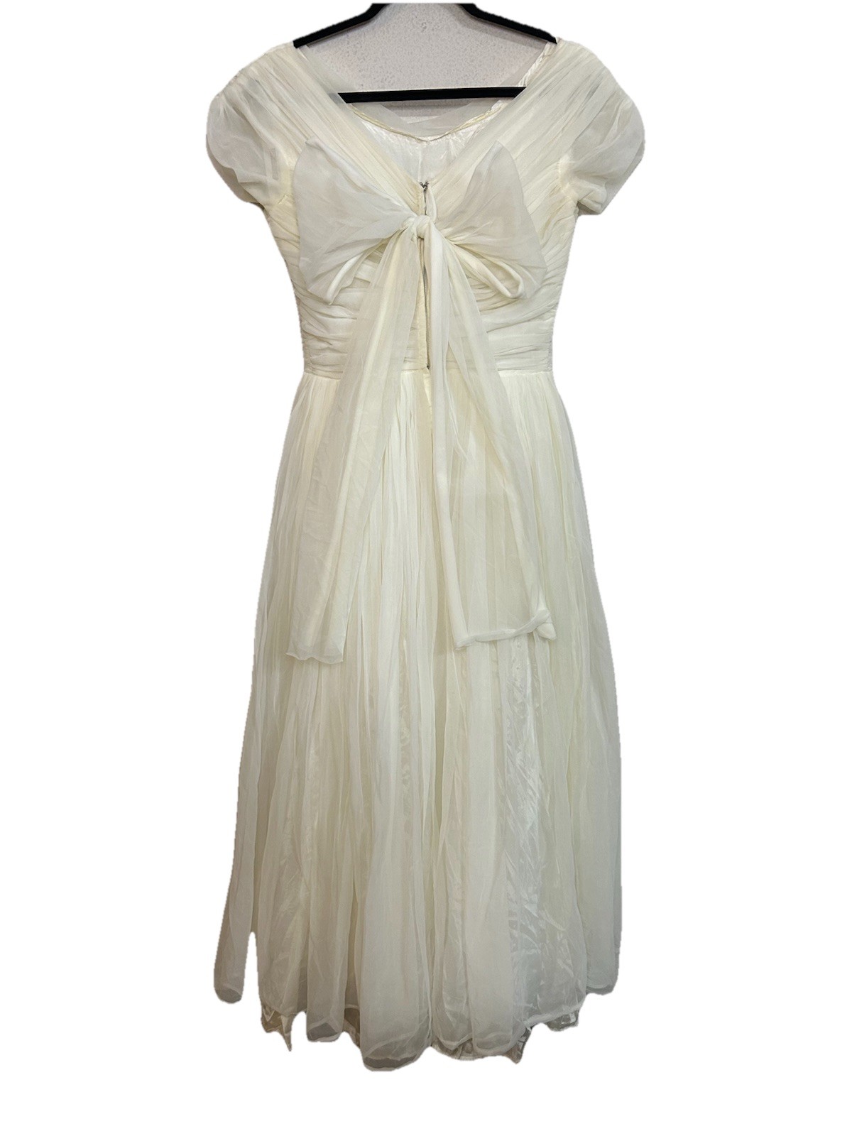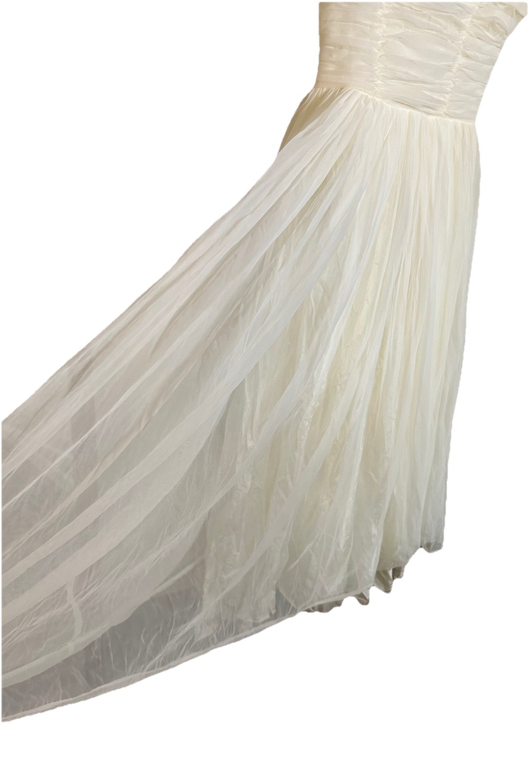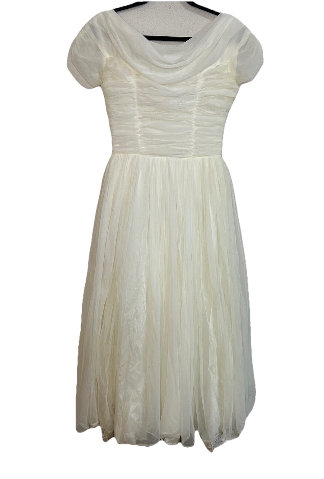 VTG 1950 s Off Shoulder Tulle Wedding Dress Ball Gown Ruched Bodice Whimsical S
