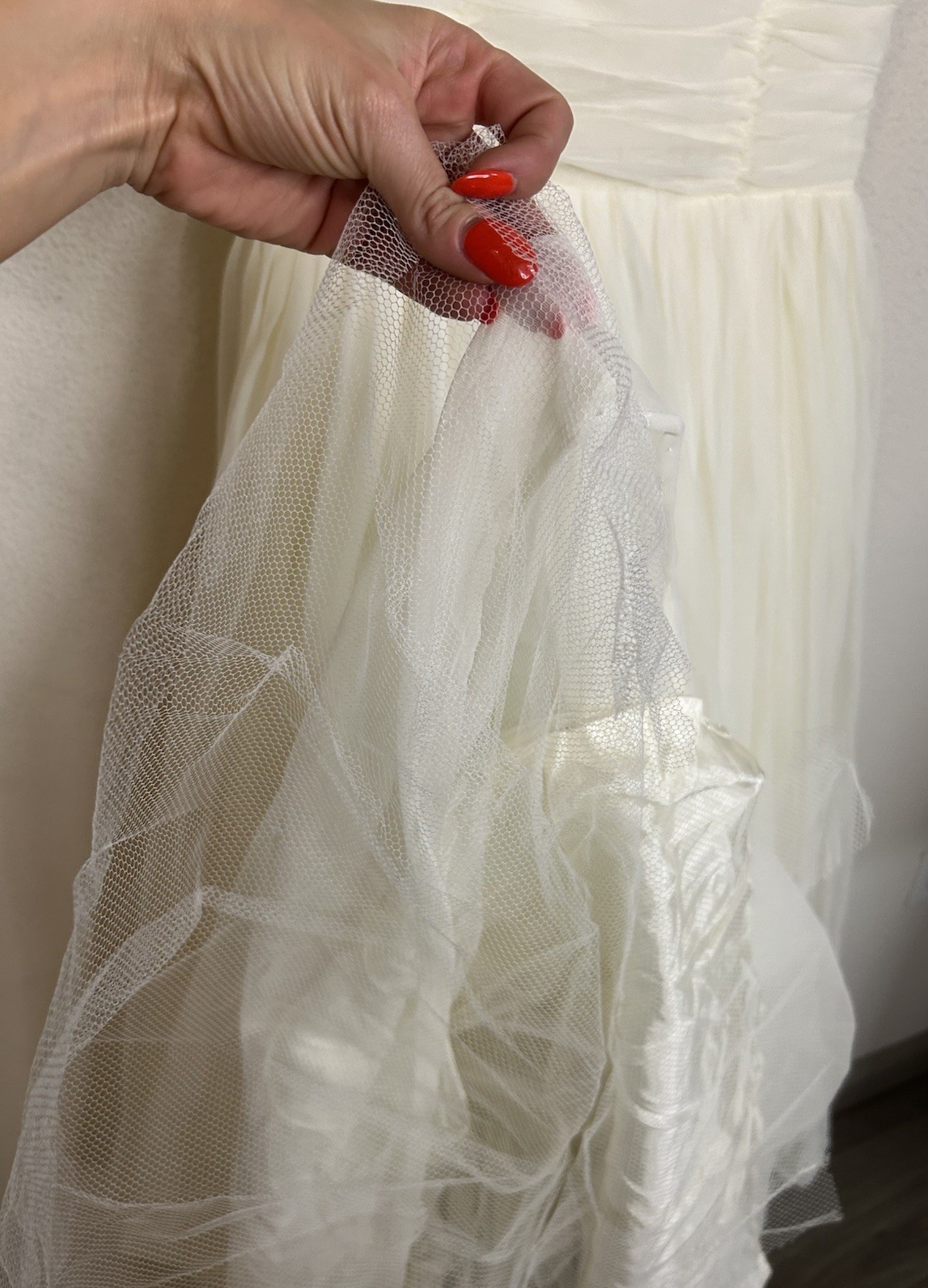 как выглядит VTG 1950 s Off Shoulder Tulle Wedding Dress Ball Gown Ruched Bodice Whimsical S фото
