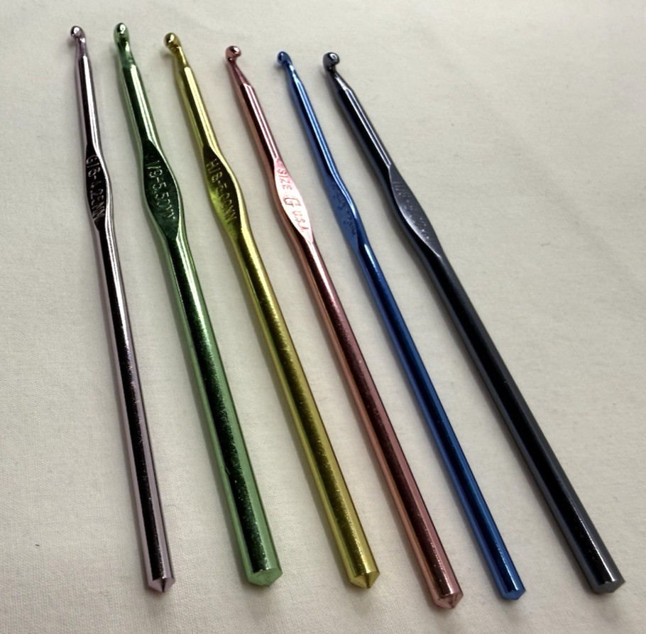 Lot 6 Hand Crochet Hooks Needles Scissors Crafting Hobby Boye