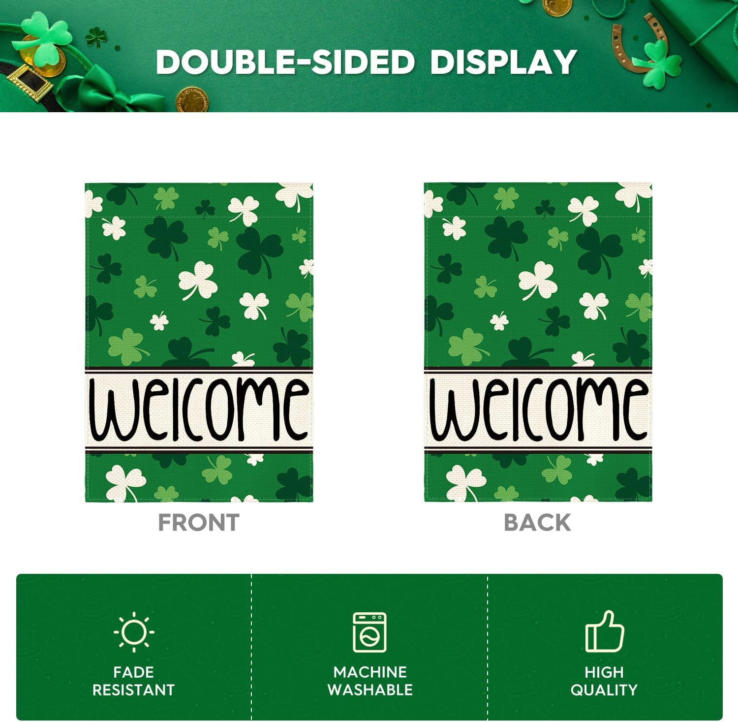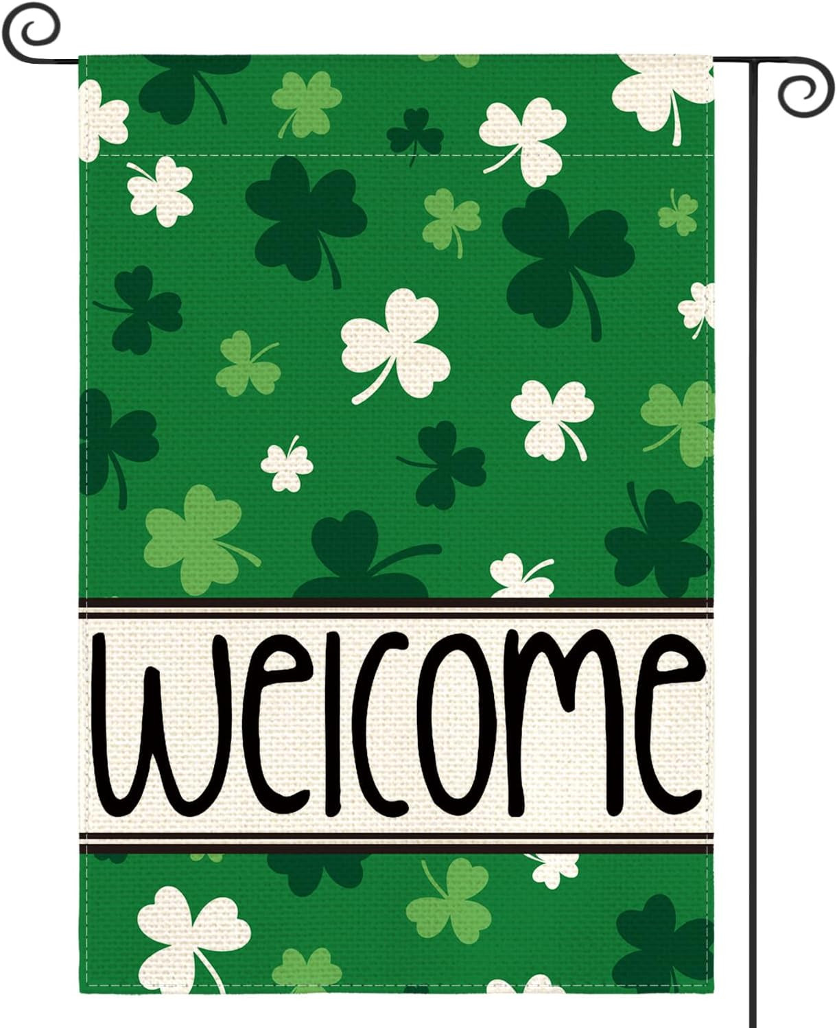 St Patricks Day Garden Flag 12X18 Inch Double Sided Outside, Shamrocks Clovers W