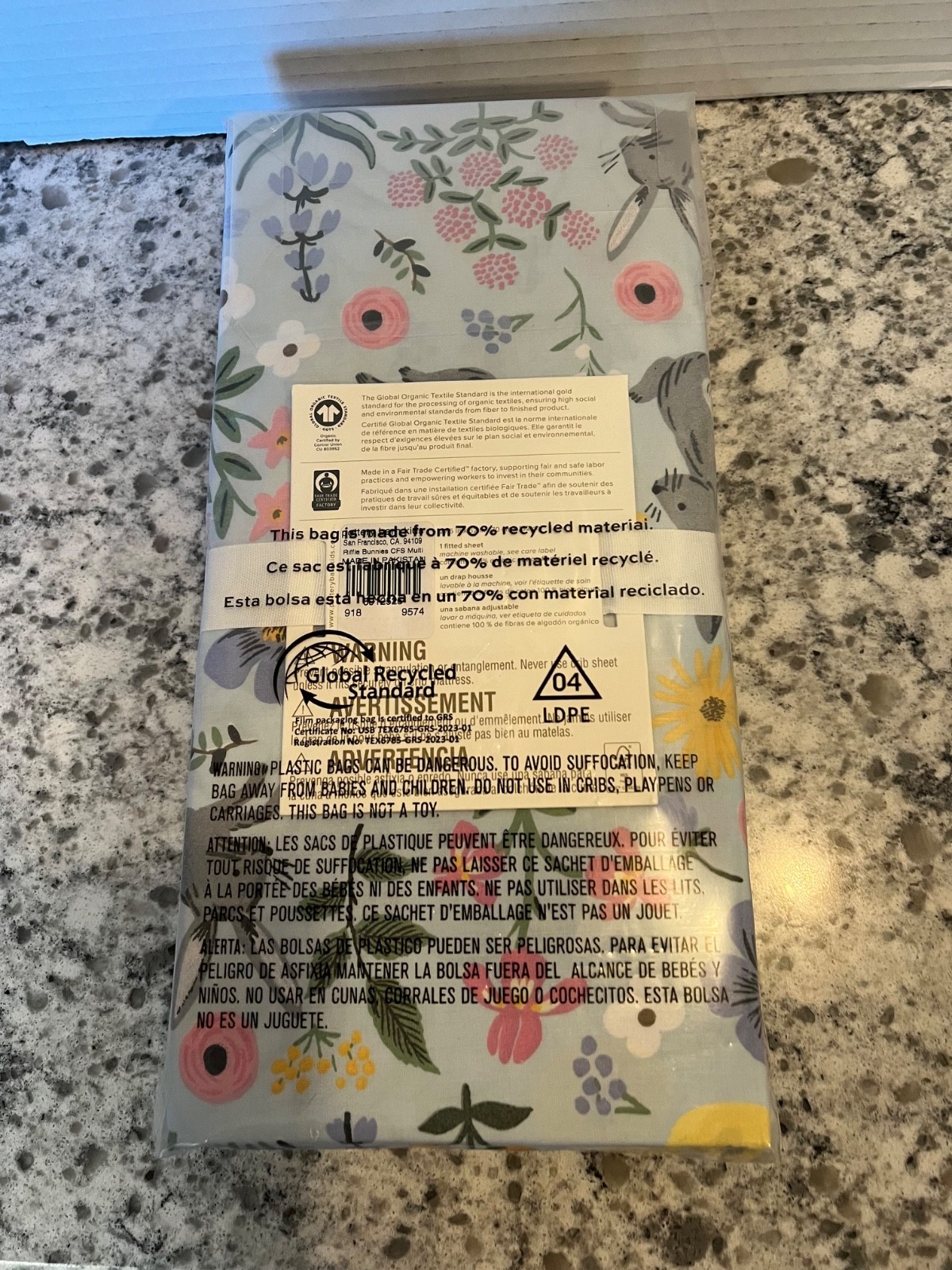 Pottery Barn Kid Bunny Floral Organic fitted crib sheet new in sealed pkg Easter