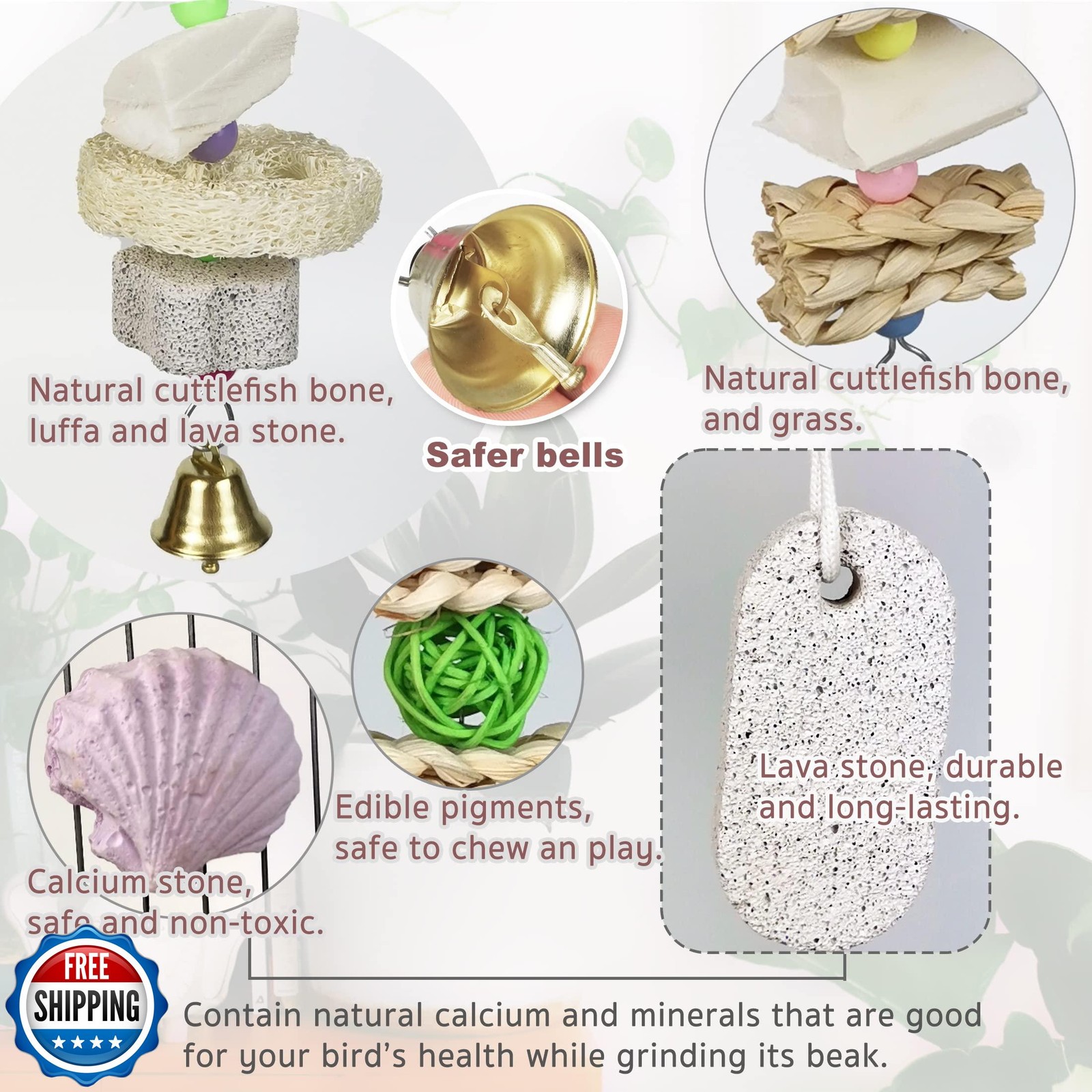 Parrot Chewing Toys 6 pcs Natural Cuttlebone Bird Beak Trimmer