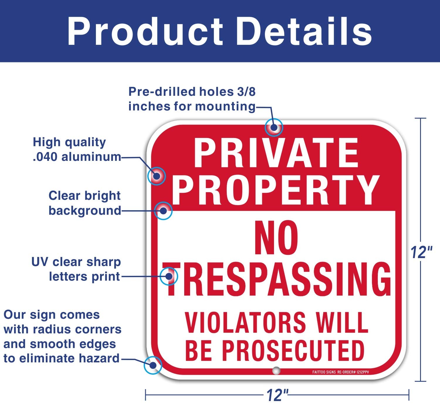 как выглядит 12" x12" x 0.04" Metal sign, Private Property No Trespassing sign - red and... фото
