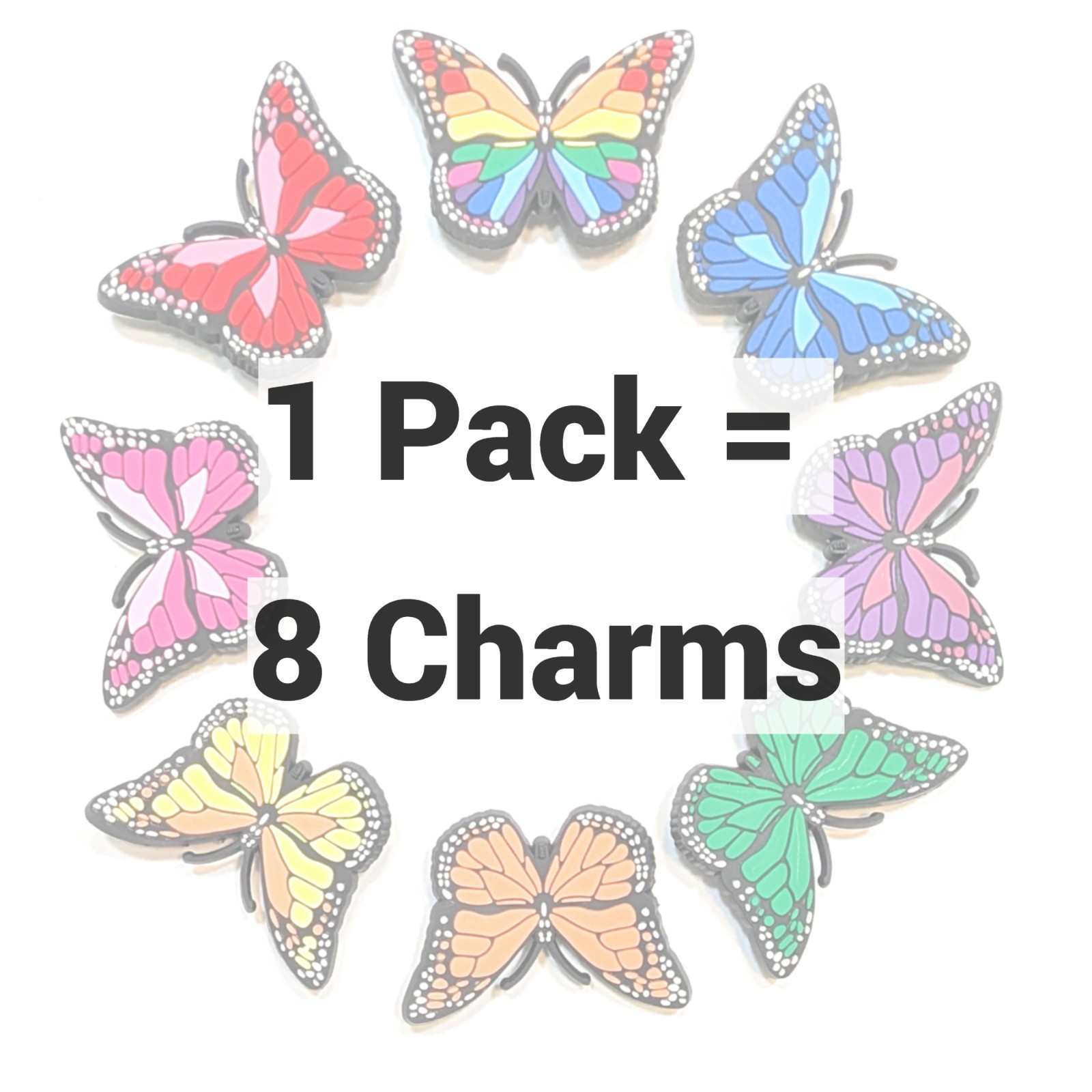 BUTTERFLY SHOE CHARMS Pack of 8 Unique back - Fits BOTH Clogs Shoelaces