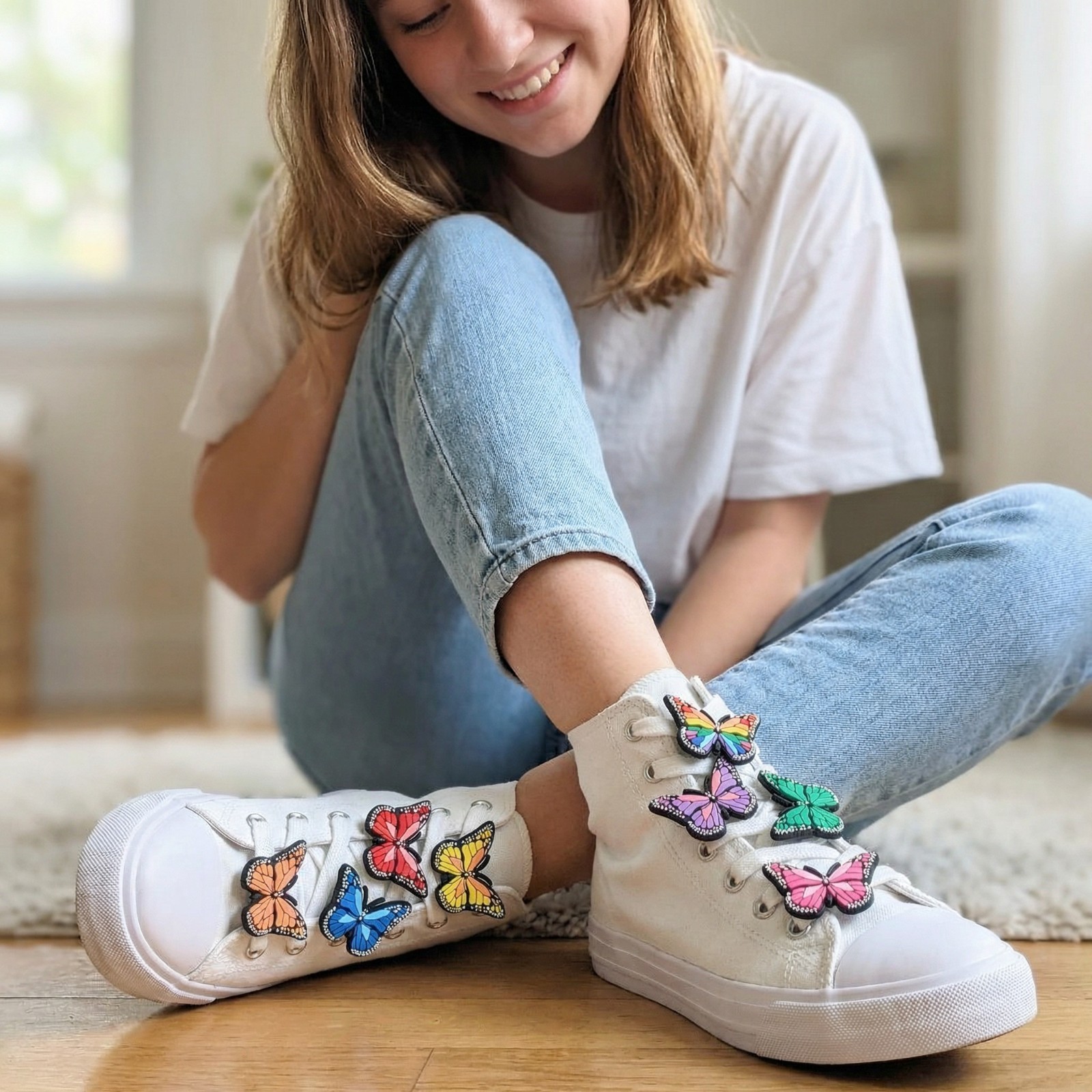 как выглядит BUTTERFLY SHOE CHARMS Pack of 8 Unique back - Fits BOTH Clogs Shoelaces фото
