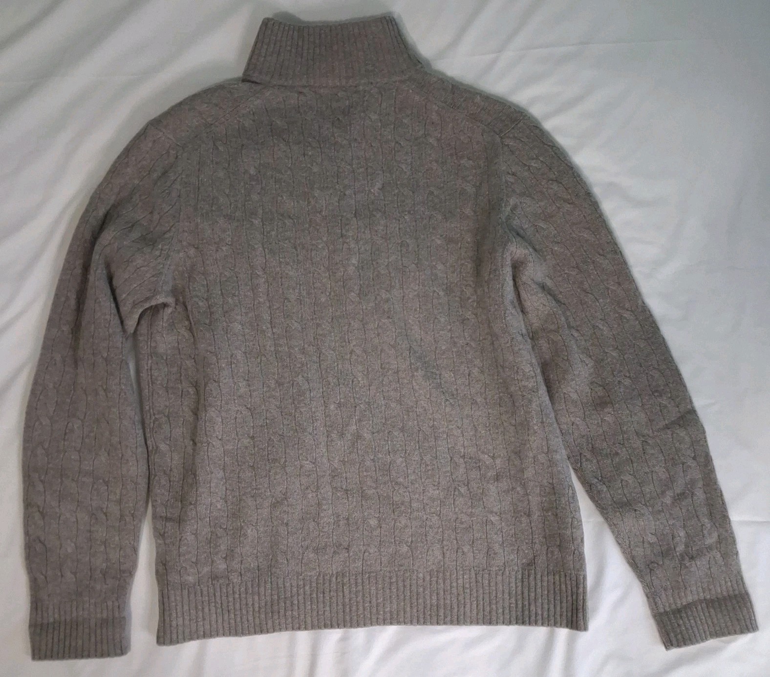 J.Crew 100 Lambs Wool Cable Knit 1/4 Zip Sweater Mens L Beige Preppy Fisherman