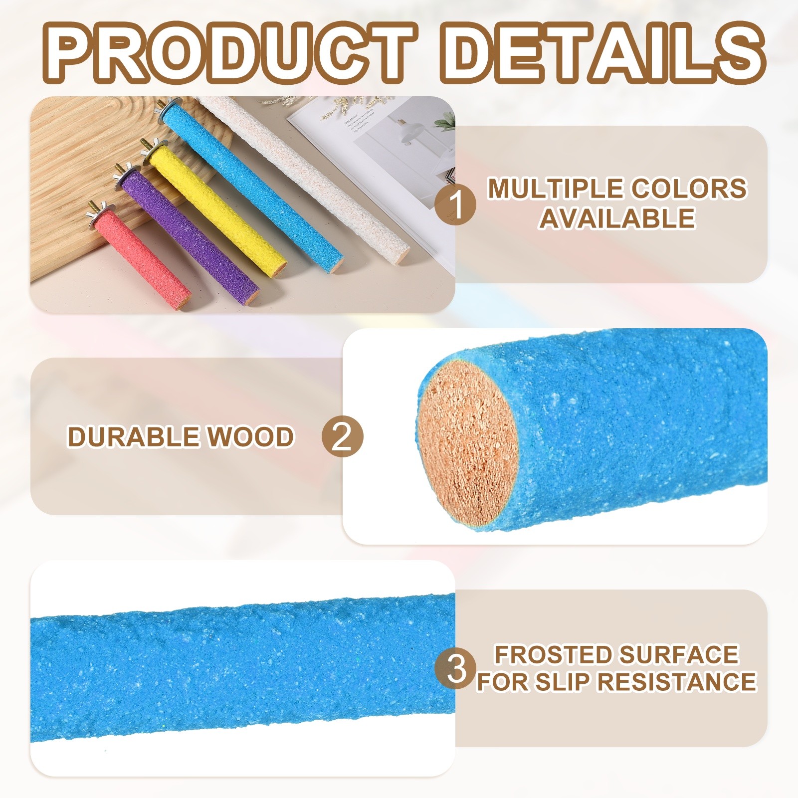Bird Cage Perch, Parrot Grinding Claw Sticks, 8/10 Inch, Wooden, Blue, 2Pcs