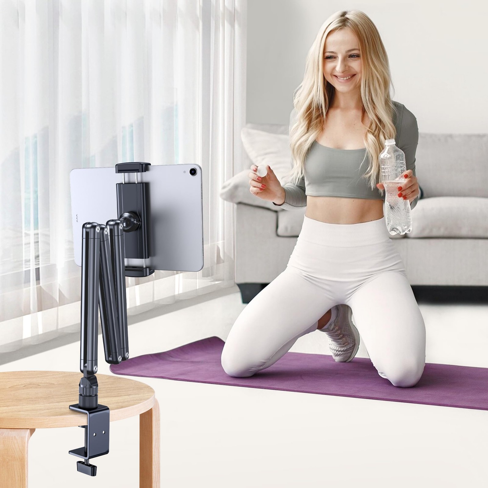 как выглядит Tablet Desk Stand Holder, Extendable Arm Table Mount for iPad, Aluminum 360 ... фото