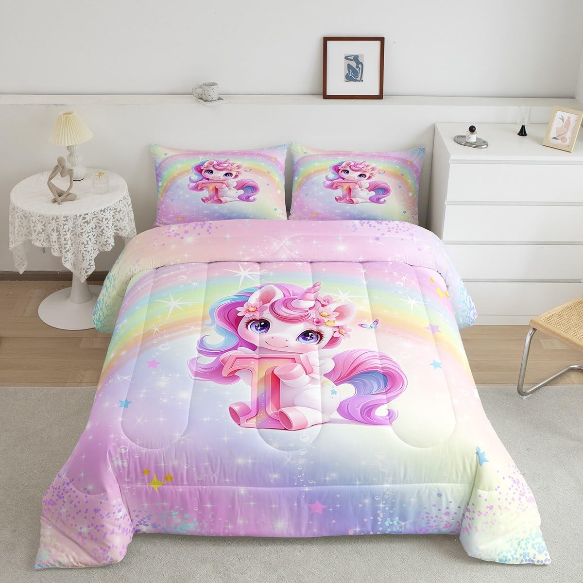 Unicorn Bedding Full All Season Rainbow Unicorn Bedding Set With 2 Pillowcase...