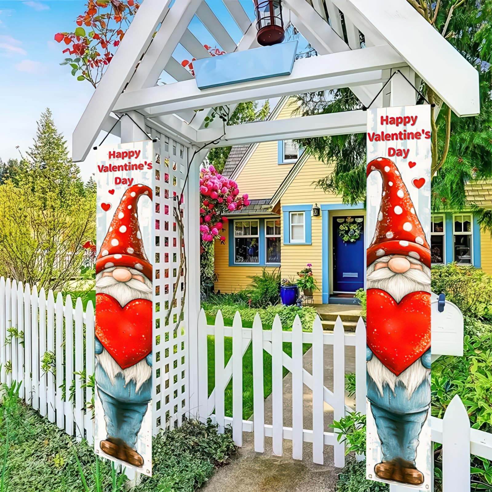 2Pcs Valentine s Day Banners Valentines Door Decoration Gnome Valentine Day Hang
