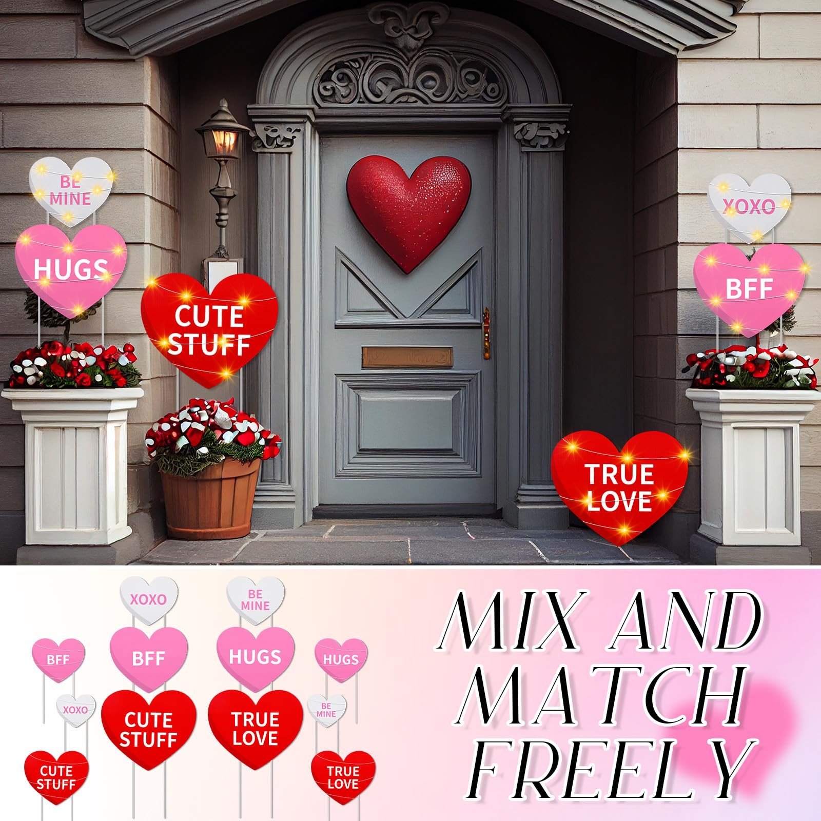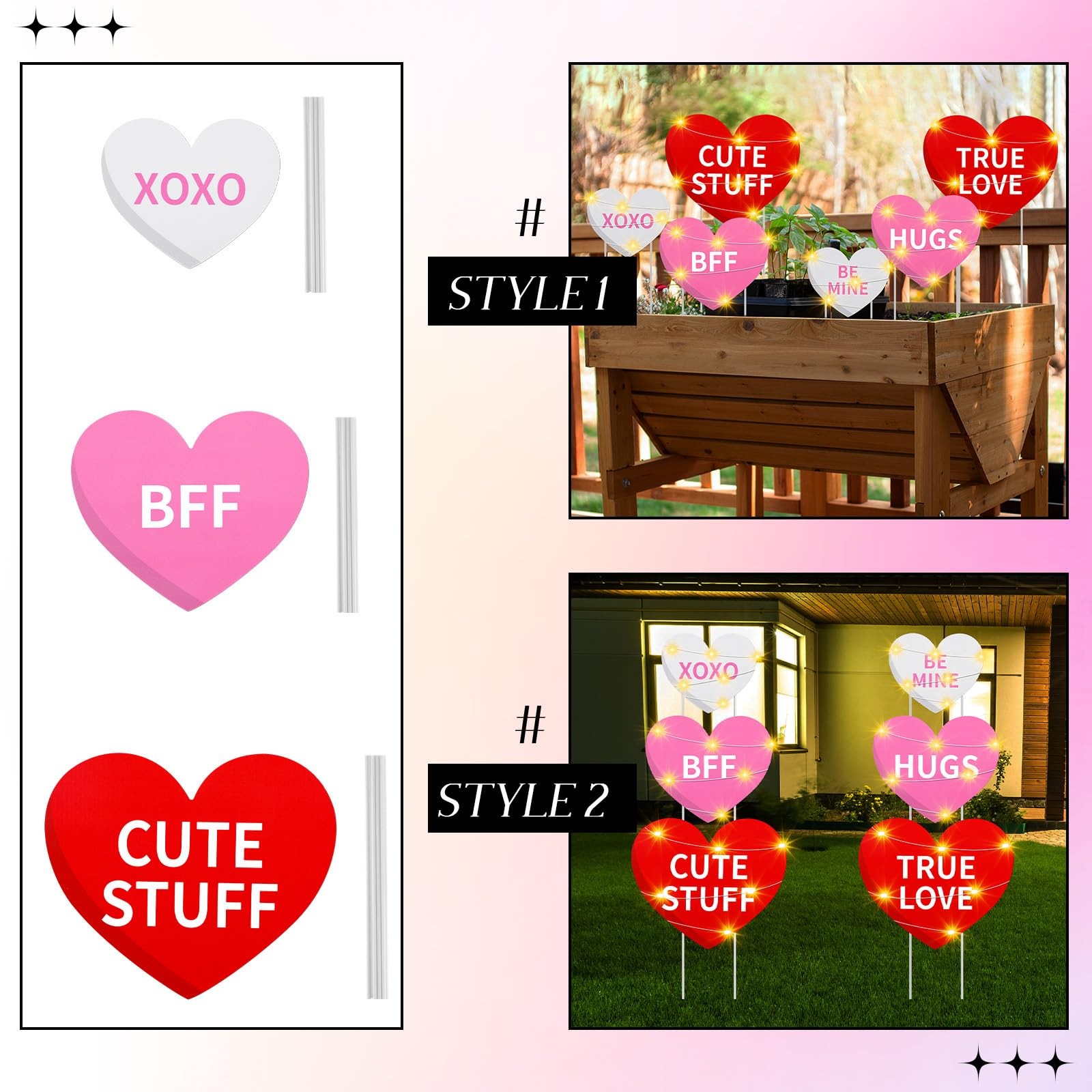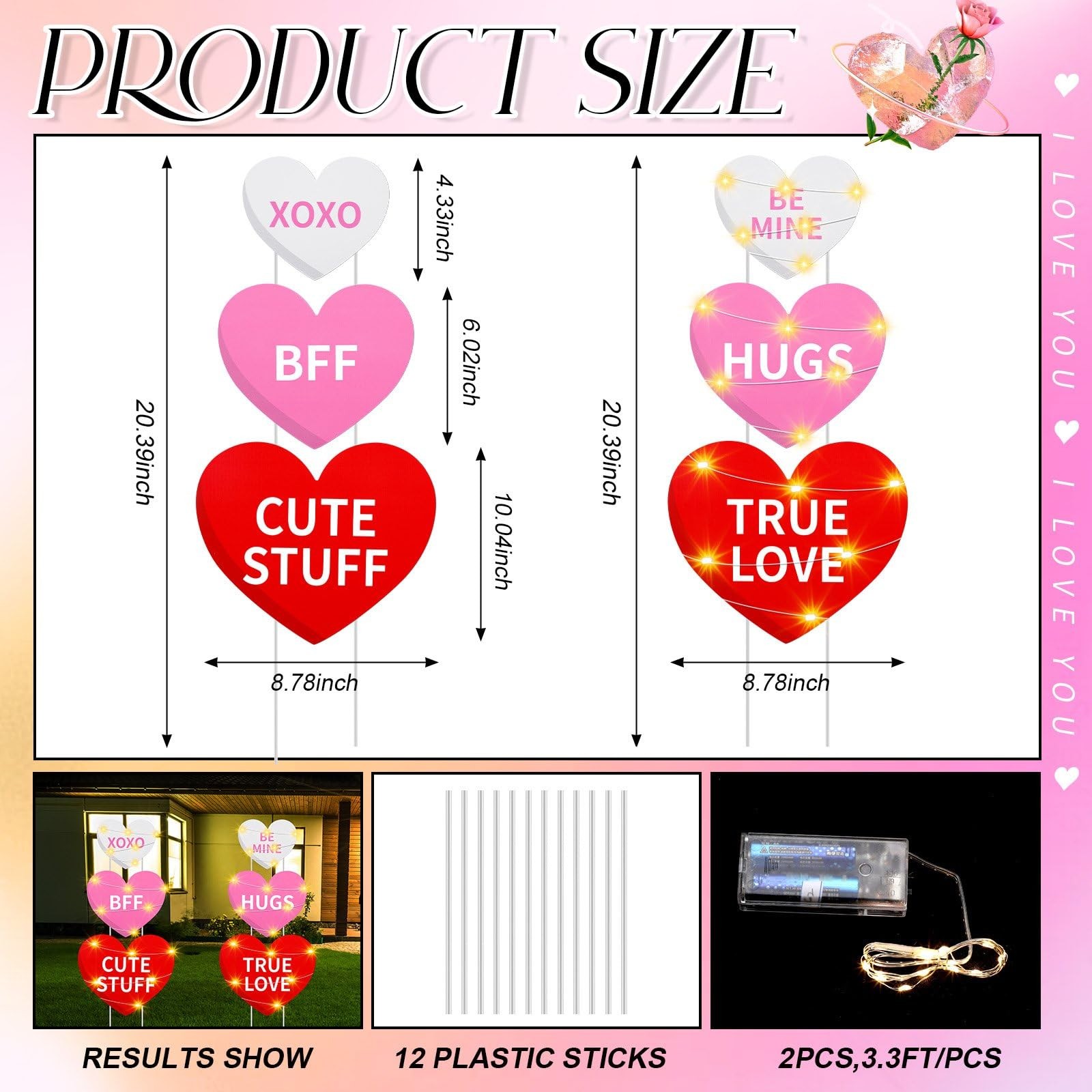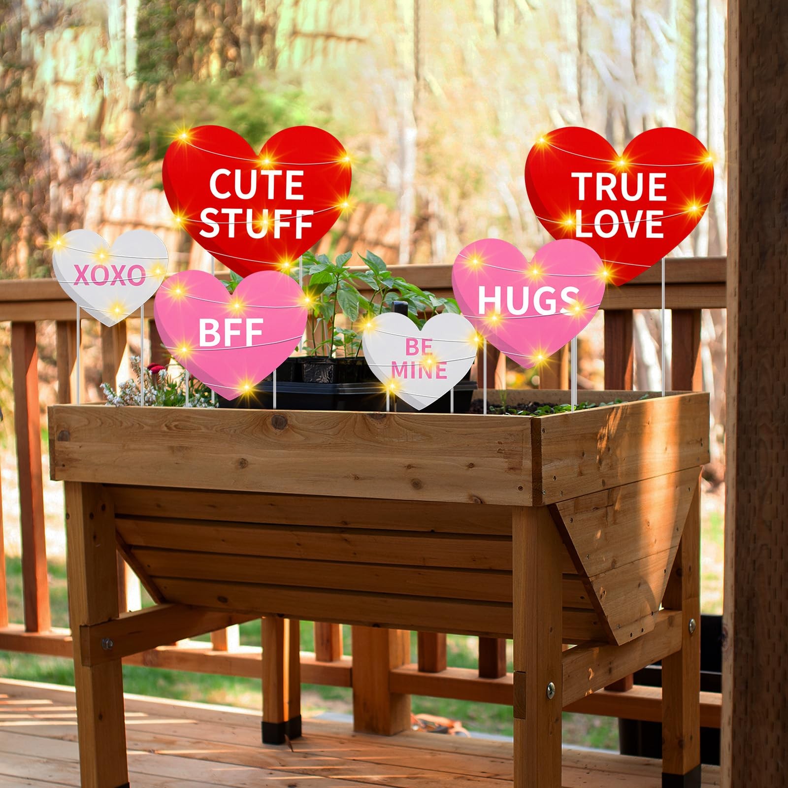 6 Pcs Valentine Yard Sign with Light Heart Garden Stakes Outdoor Lawn Decor Hear