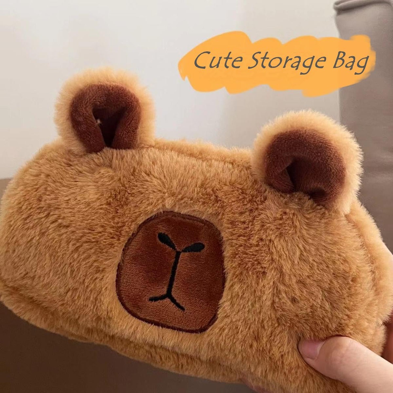 как выглядит Capybara Makeup Bag Cute Comestic Bag, Small Fluffy Zipper Pouch Travel Toile... фото