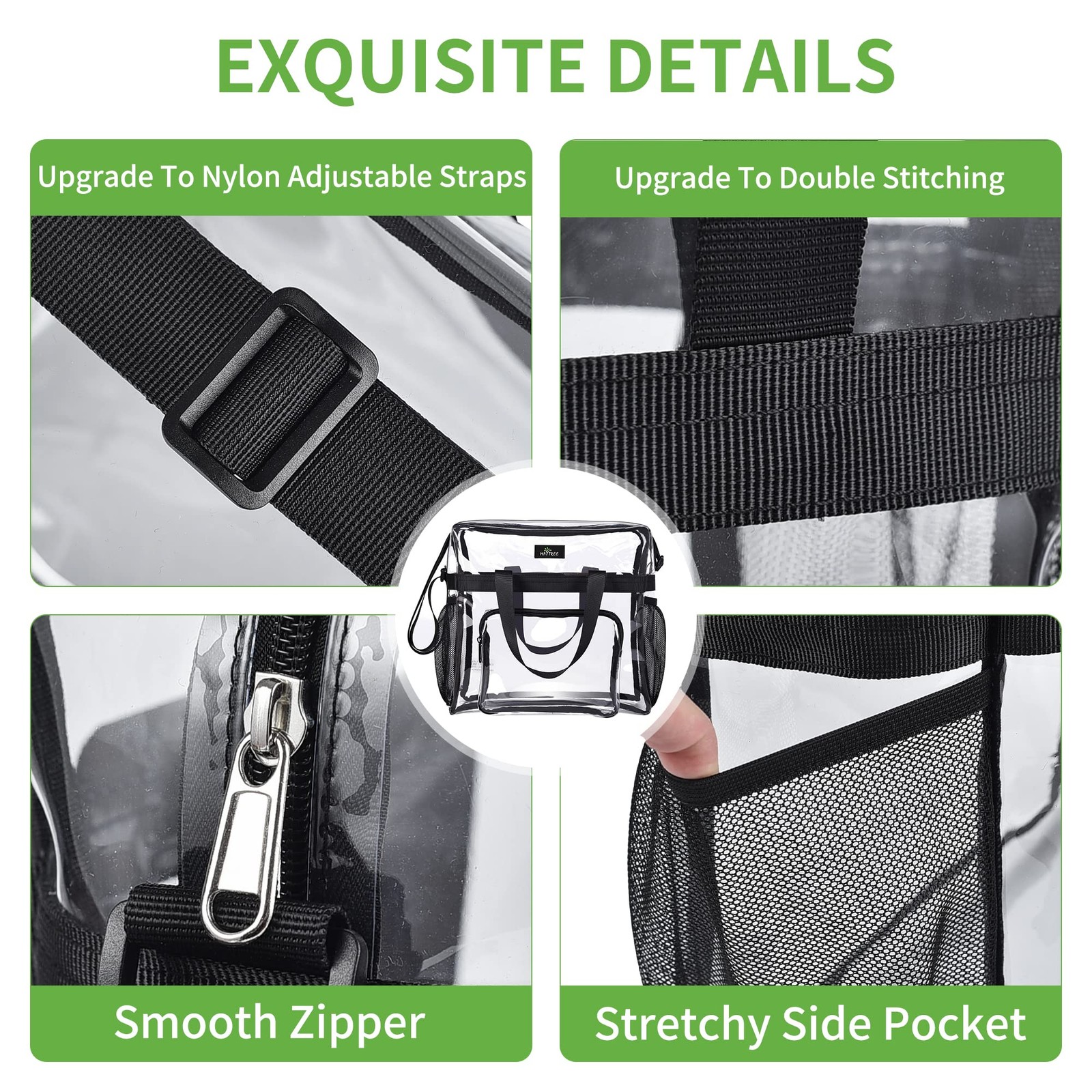 MAY TREE Clear Bag for Stadium Events 12 6 12 Tote One Size, Black