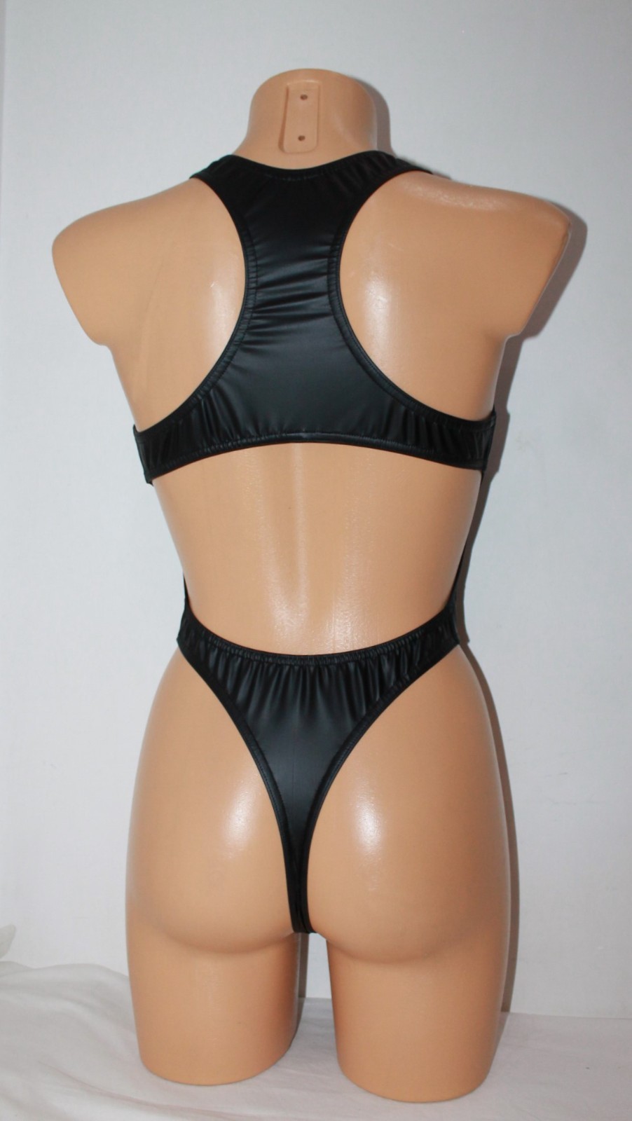 Women Thong One-piece Leotard 202-13 Racerback Black Spandex Lrather-like Size M