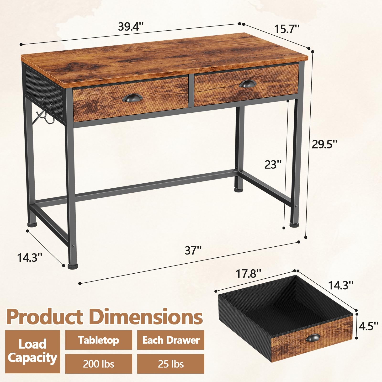 Small Computer Desk with 2 Fabric Drawers, 40 Inch Simple Home Office Desk, W...