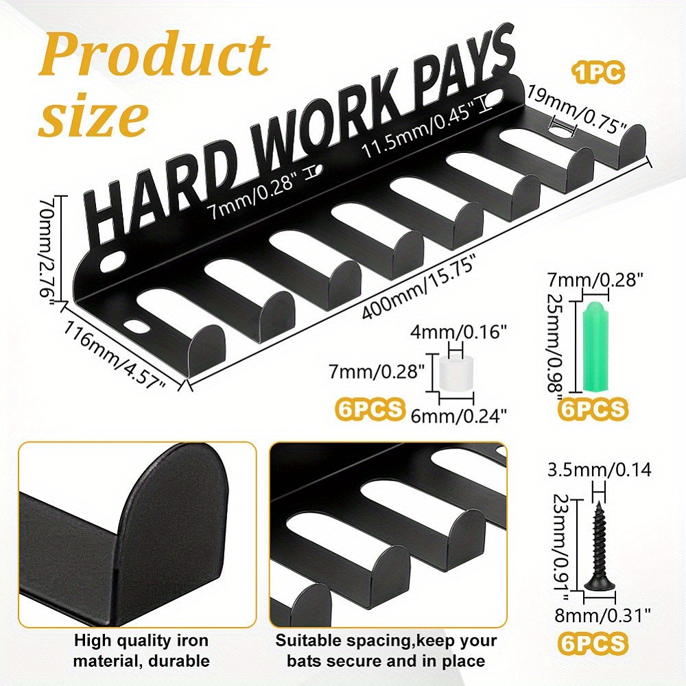 1set Word Hard Work Pays Iron Baseball Bat Display Stand with Screw