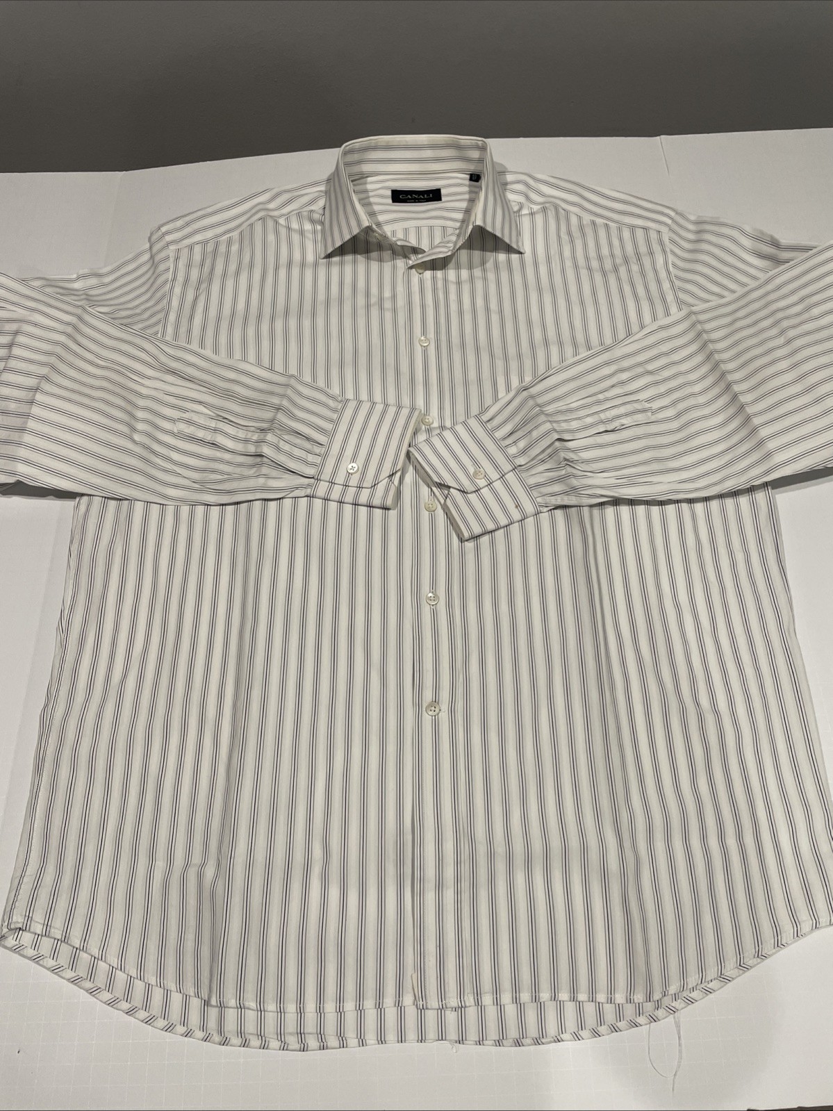 Canali Men s Gray/Tarn Stripe Spread Collar Cotton Dress Shirt Sz 17. Made Italy