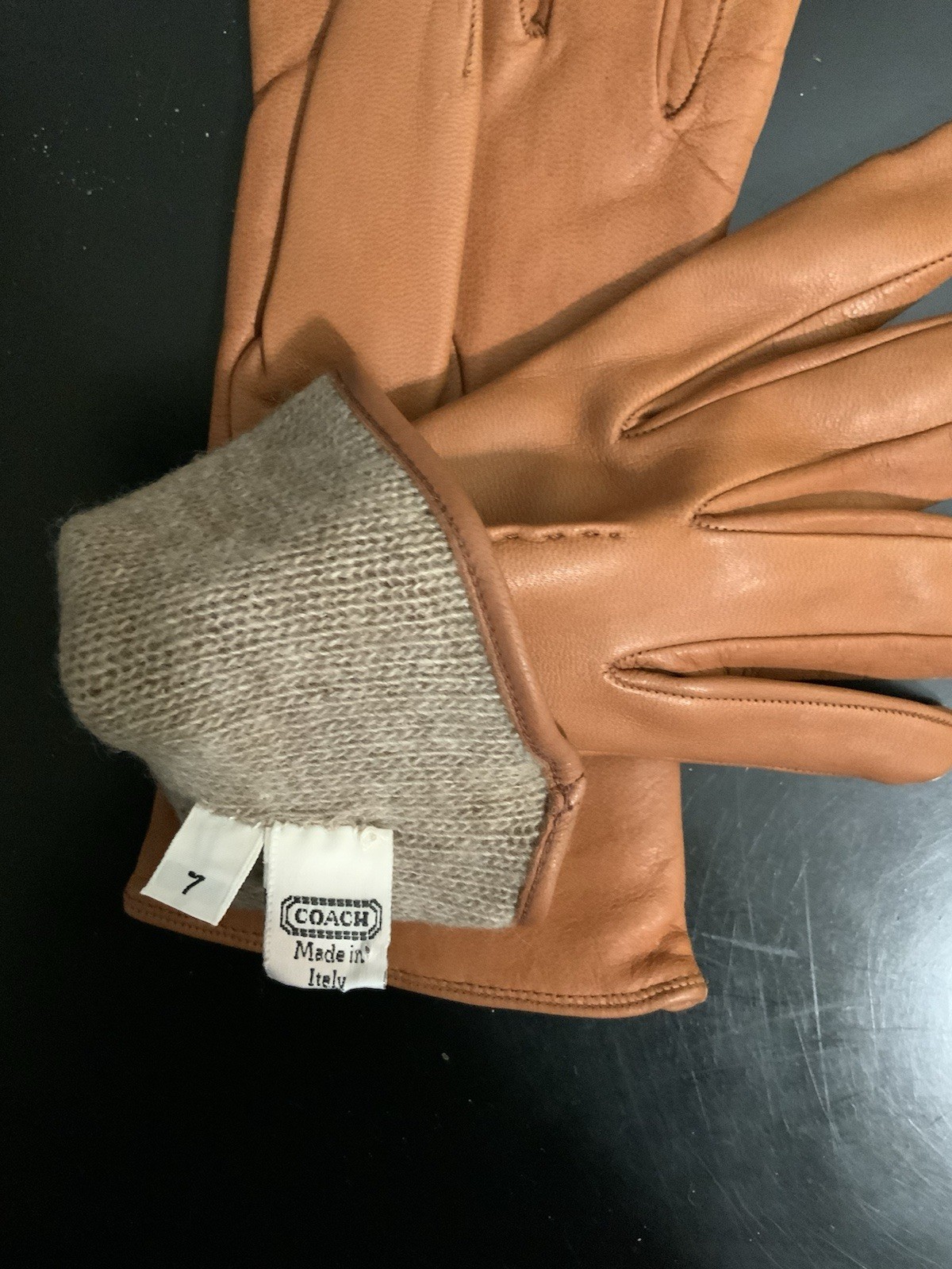 Coach Leather 100 Cashmere Lined Gloves, Brown, Size 7