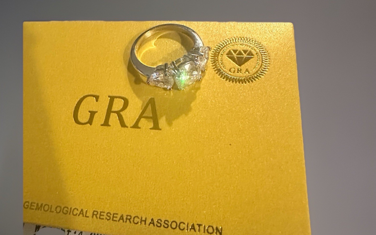 как выглядит 4.00 Ct. weight, 3 Stone, White Moissanite Ring. VVS, GRA. фото